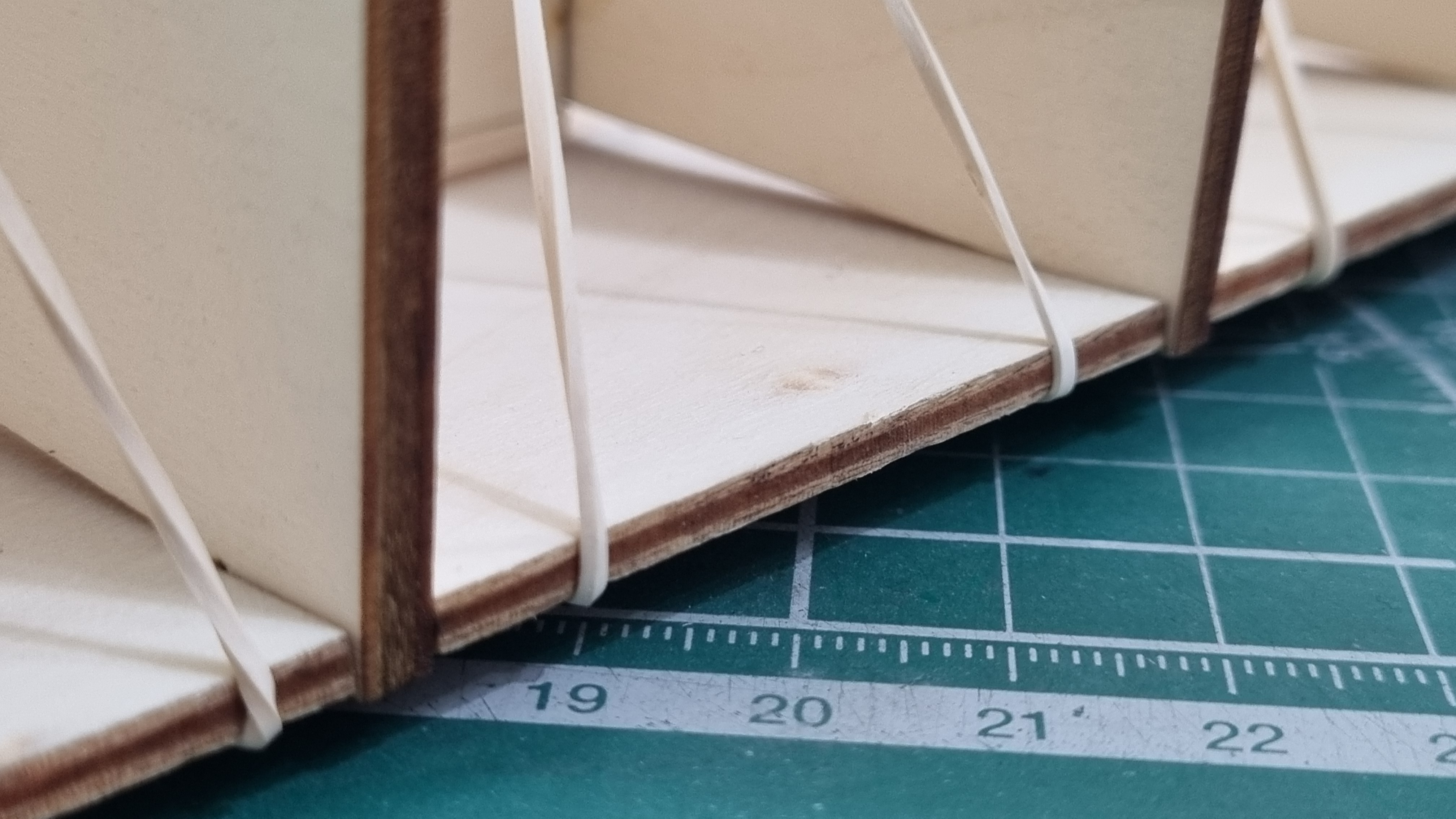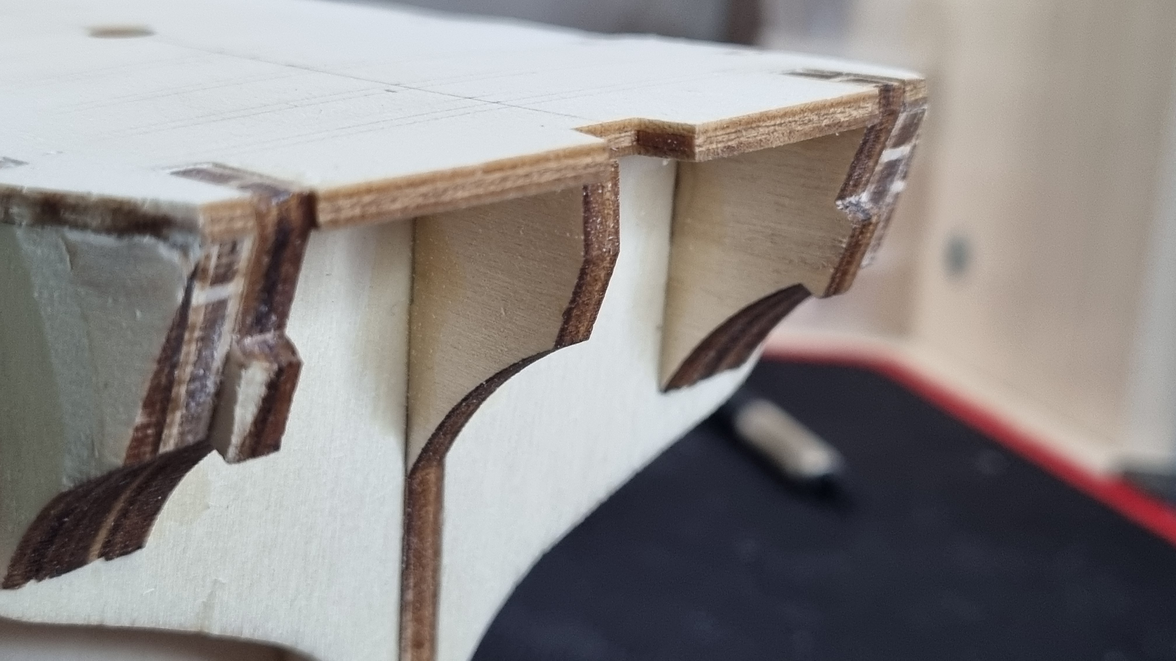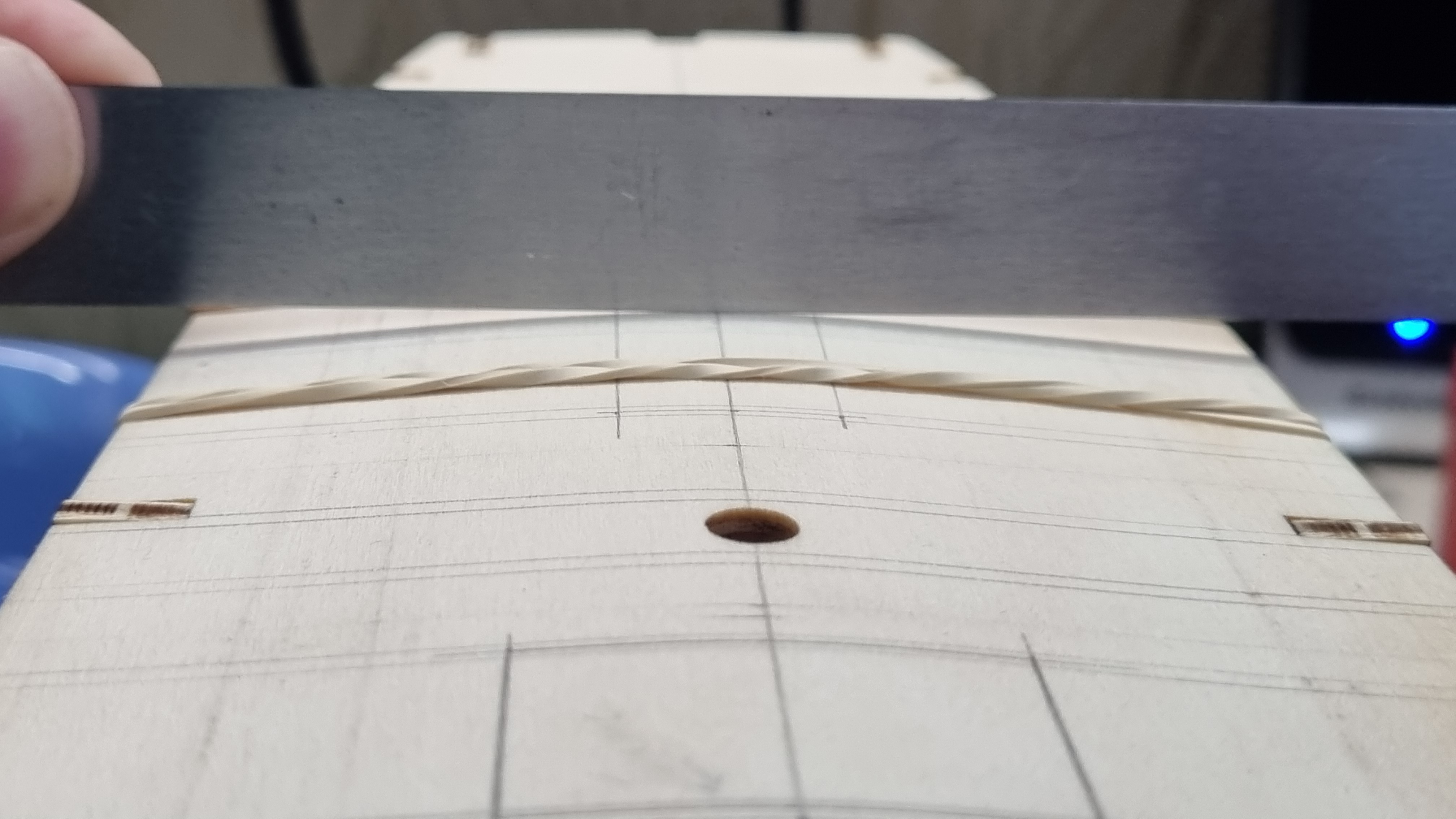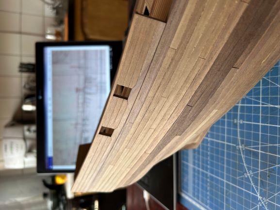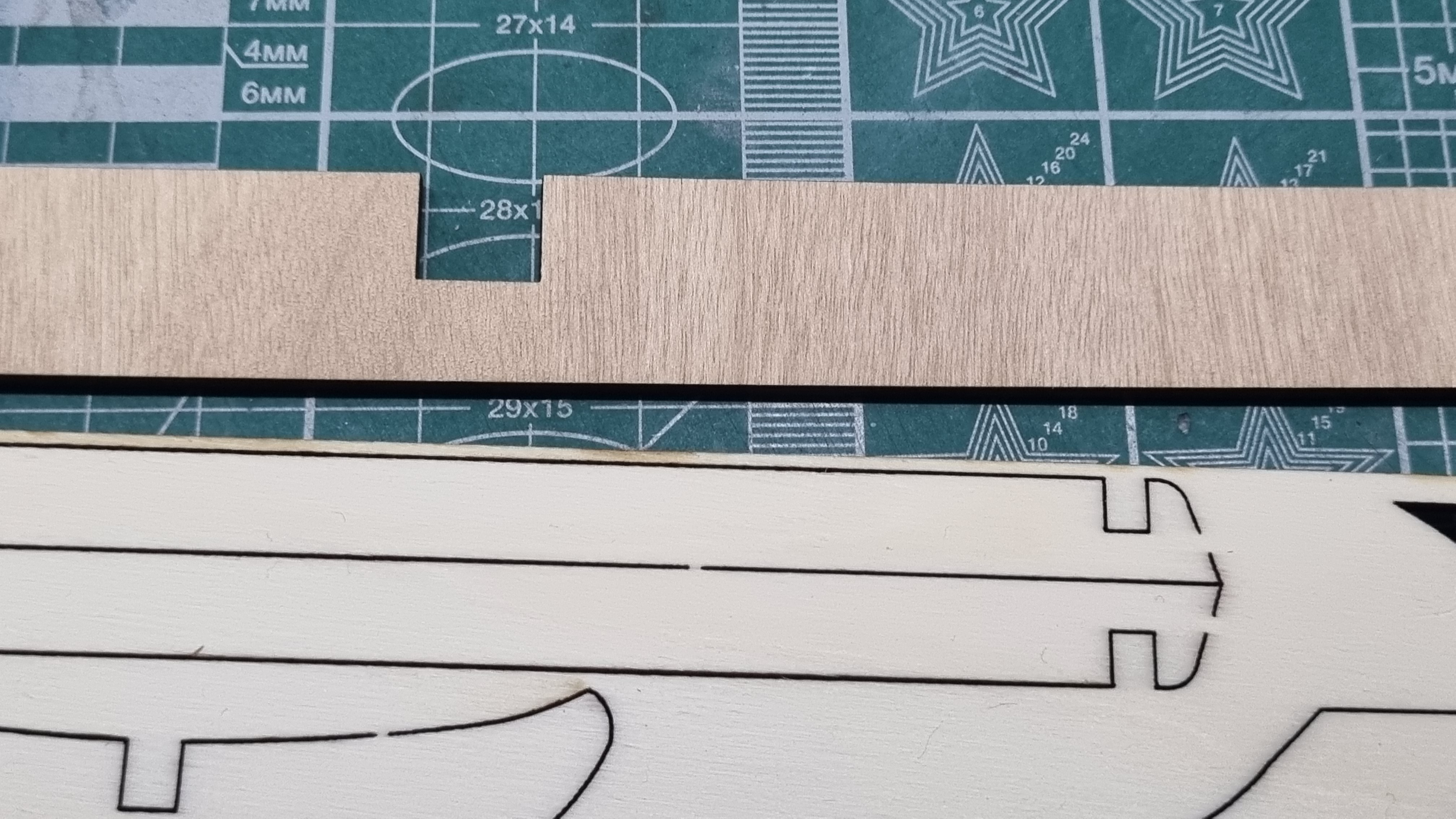 Кстати, я ж так то и поднял киль на 2,3 мм. Перемерил рейки черновые, нашел потолще. То есть если считать что изначально всё было ровно, то я поднял палубу на 2 мм.