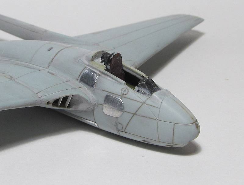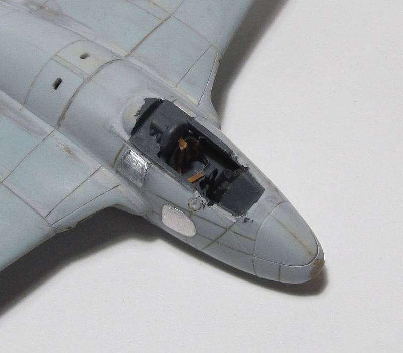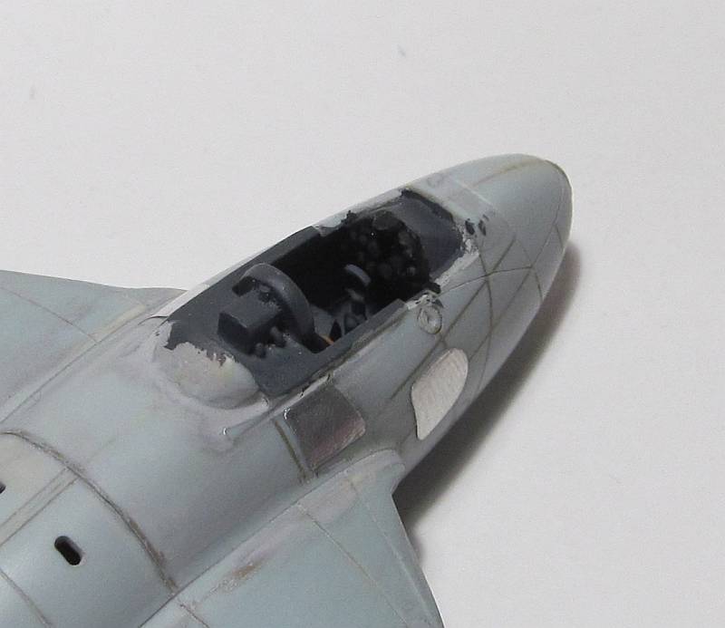 По поводу фонаря, коллеги, не извольте беспокоиться, он там только ради защиты кокпита от грунтовки. Впоследствии будет заменён деталью выдавленной из позрачной плёнки.