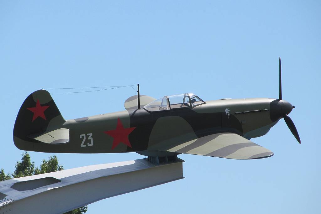 Памятник Лидии Литвяк, макет Як-1б в мемориальном комплексе Самбекские высоты подТаганрогом.