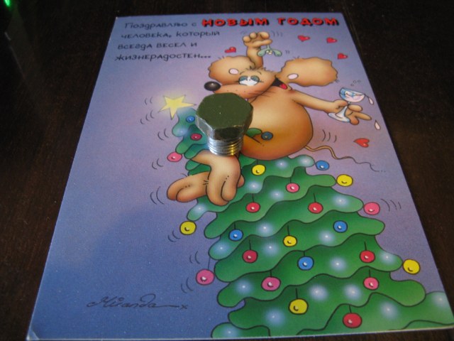 Спасибо моему Дедушке Морозу Вячеславу, почти с северного полюса!!!!!!!. Подарок почтовые олени донесли в целости и сохранности, положили под ёлочку. Лежит он там, 1 числа дожидается.