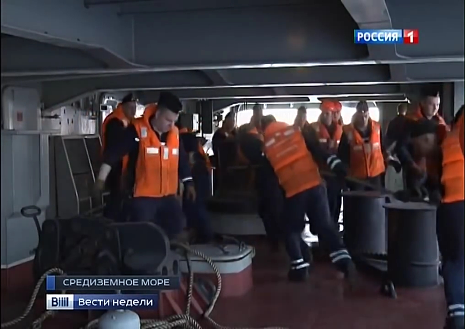 Это последовательные кадры из репортажа. Чуваки выбегают по учебной тревоги и шмаляют с кормы. Точно на балконе. Поэтому и предположил, что это всё в одном месте. Хотя точно определить положение иллюминатора тяжеловато, но там, на мой взгляд, как раз хорошо виден поДволок.