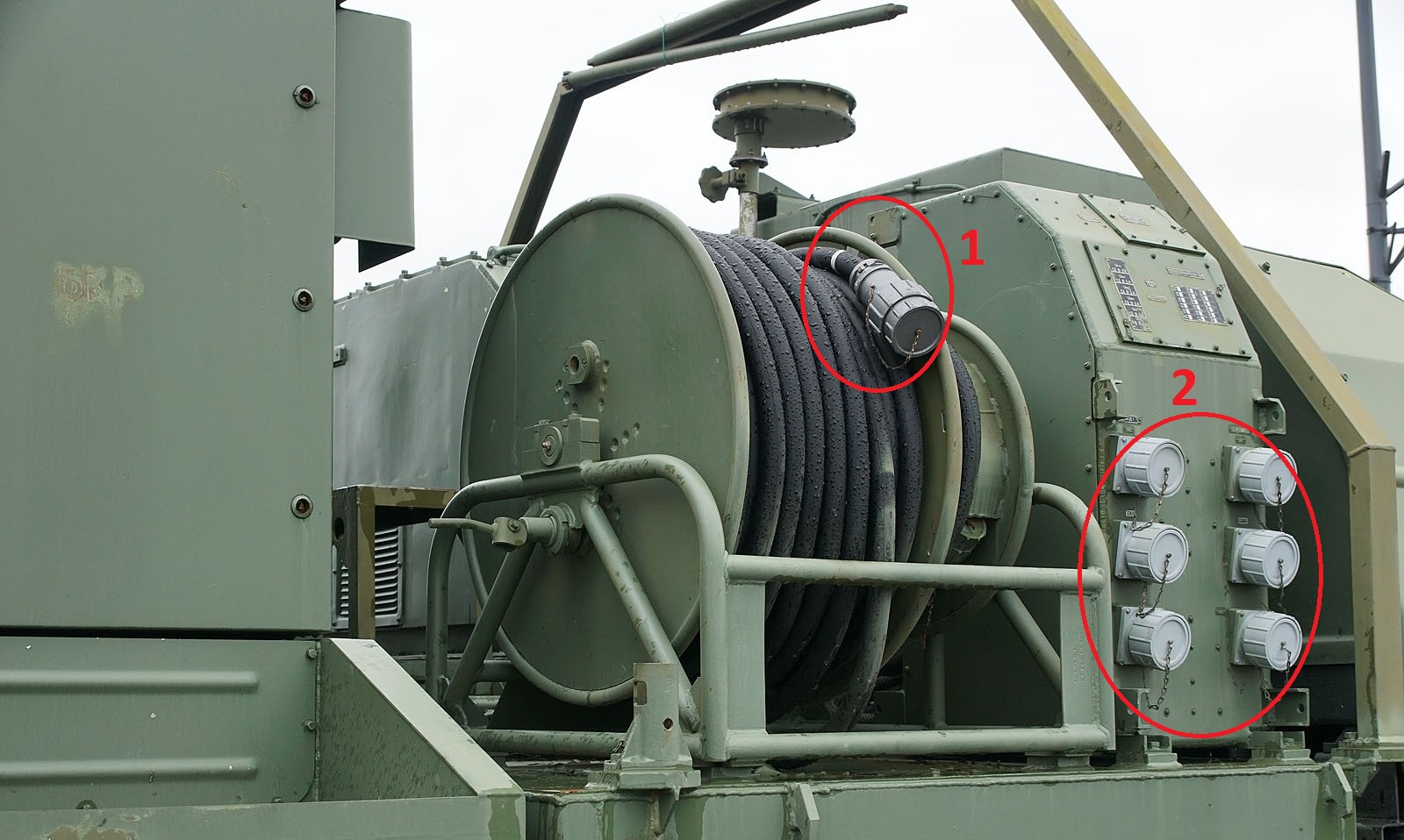 Есть в открытом доступе учебное пособие по ПУ П85СЕ2. Оттуда известно, что на бобине - кабель внешнего электропитания, которым ПУ П85С подключаются к П85Д. Но при этом время перехода в боевой режим с марша указывается без учета подключения кабелей. Значит, вроде как для пуска кабель внешнего электропитания не обязателен. Но то всё актуально для С-300, а тут С-400, ПУ 5П85СМ2-01, а ПУ типа П85Д вообще отсутствуют.