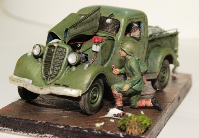 Машина отлично получилась,а вот солдатик на американца больно похож,пилотку ему лучше бы надеть, да и с "сидором" за спиной рулить наверно неудобно.