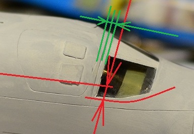 Заметил еще косяк. Лобовое остекление все же не правильной формы, т.е. если смотреть сбоку, то нижняя линия остекления козырька должна примерно встречаться с нижней линией окна на крышке фонаря. Короче из лапширака клеил на лобовик элементы, что бы хоть как-то подправить.