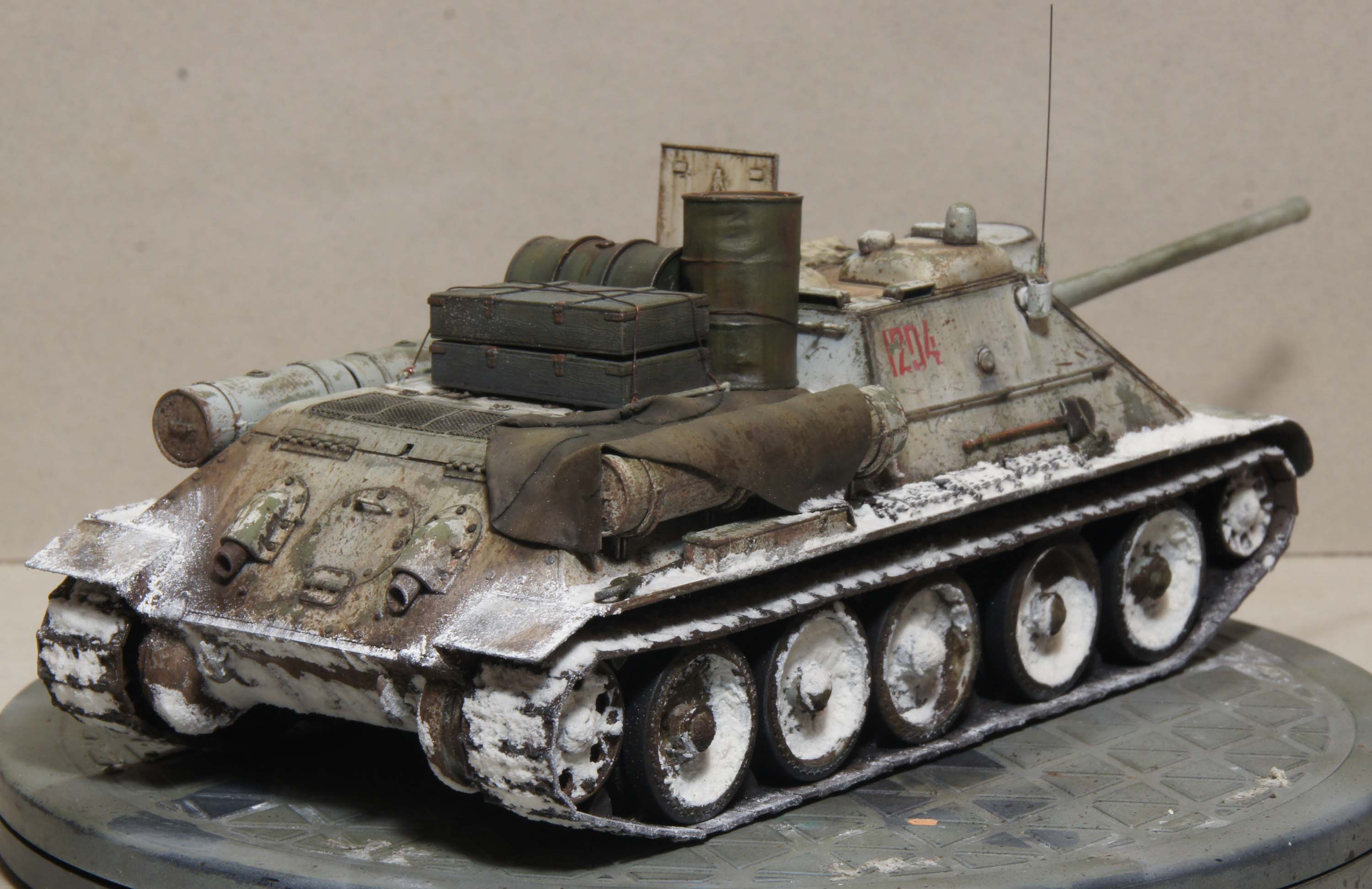 А так вроде ничего. Пока промежуточный вариант, но кажется с грязюкой я перестарался. Наверное еще чего-нибудь добавлю на ходовую. Заодно попробую изобразить снег.