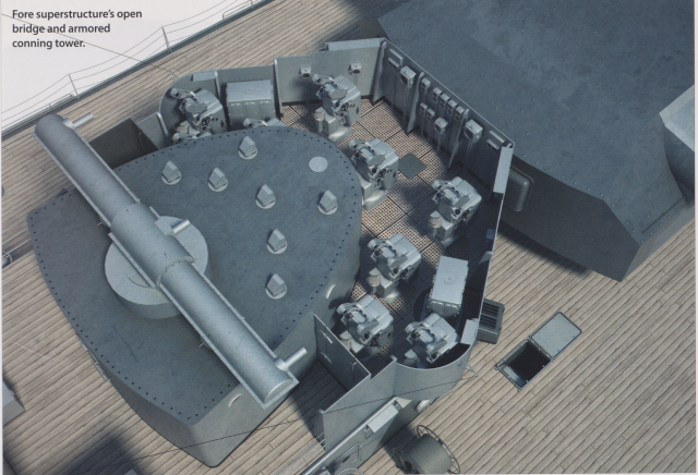 Основная надстройка у Трумпетера покрыта досками, а похоже это было не так, в средней части около трубы был линолеум.