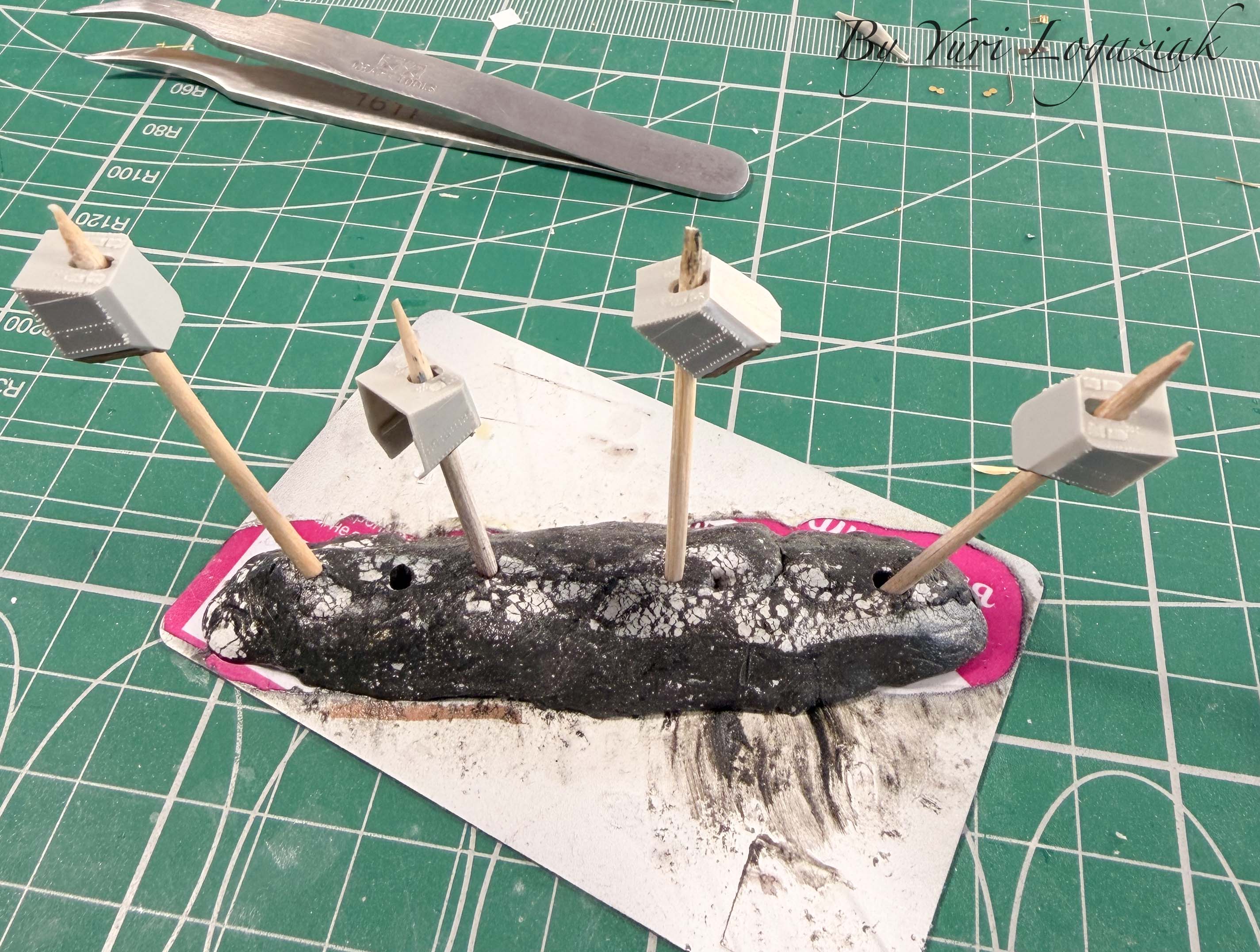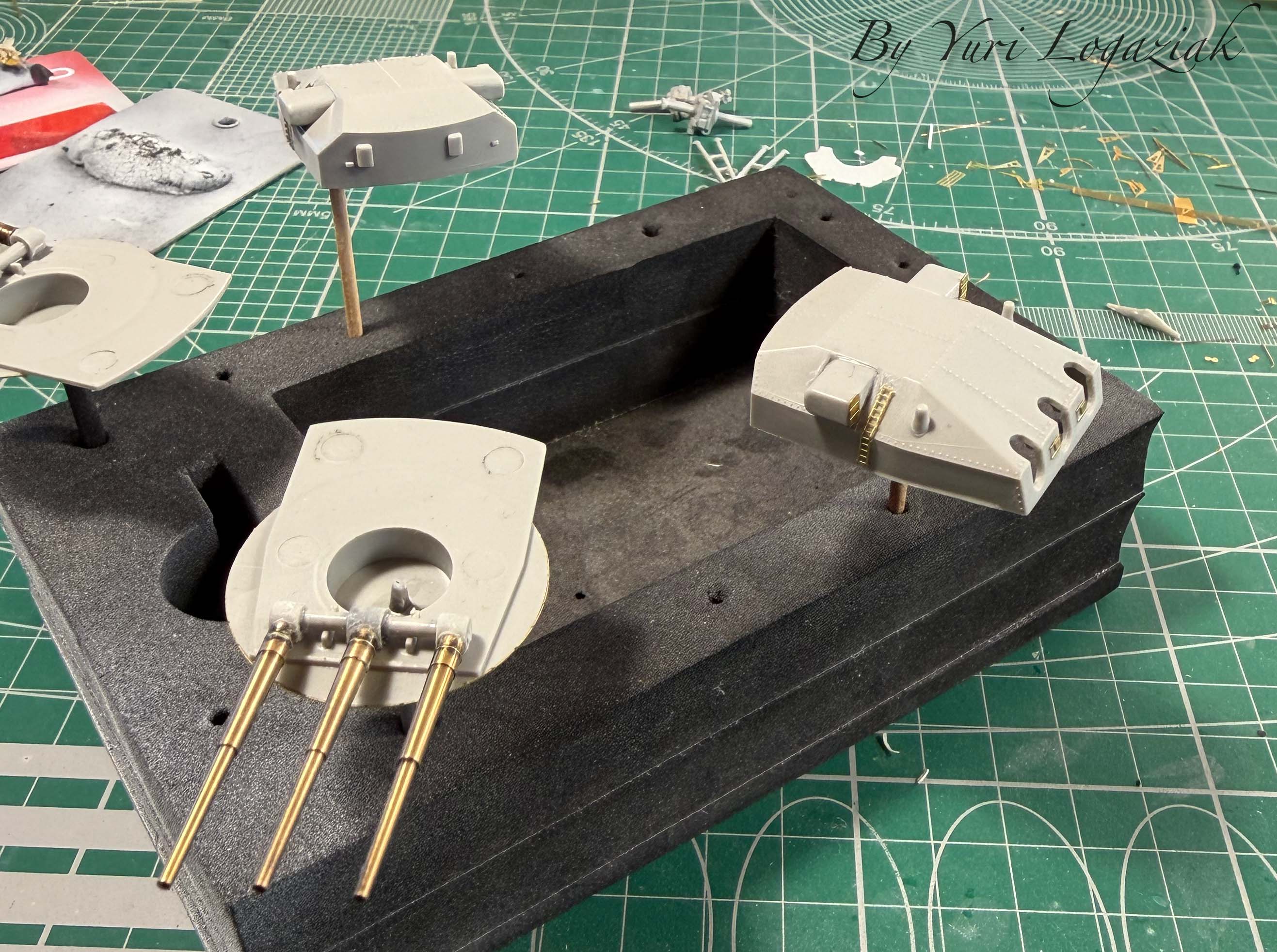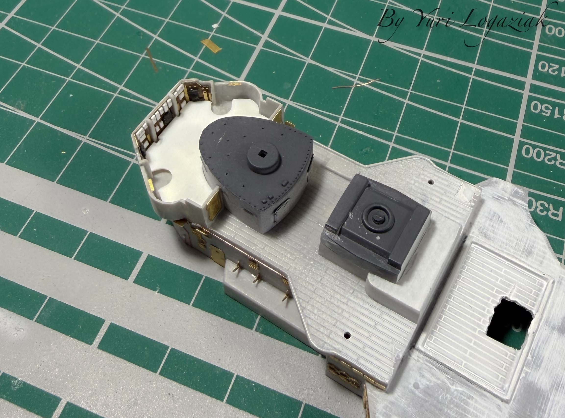 Саму боевую рубку обклеил полистиролом, обточил, серое, как видно - это трумпетер, остальное мое