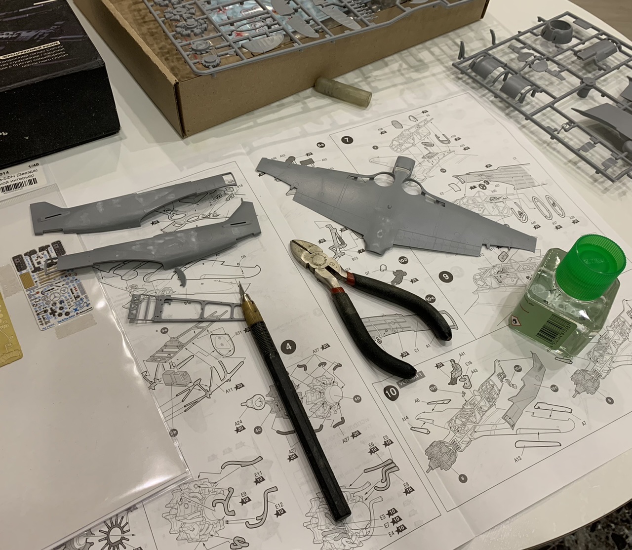 Всем доброго дня! Получив в подарок на 23 февраля данный набор, решил поучаствовать в состязании. Так же был приобретён набор ФТД от МД. На текущий момент зачистил половинки фюзеляжа, нижнюю часть крыла, поборол утяжины. Фото выкладываю с телефона, поэтому могут быть переразмерны. Спасибо за внимание!