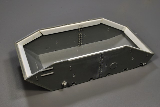 -зашпаклевал всю рашивку. На модели расстояние между листами очень большое. Расшил все по новому с помощью острого ножа.