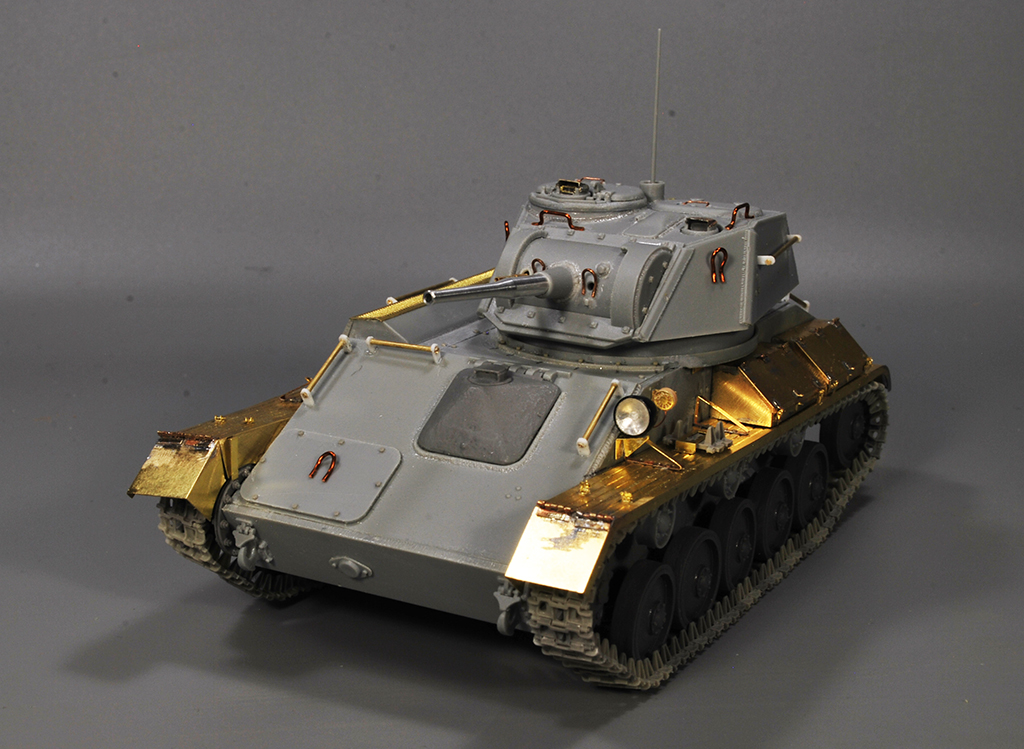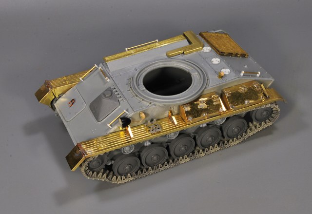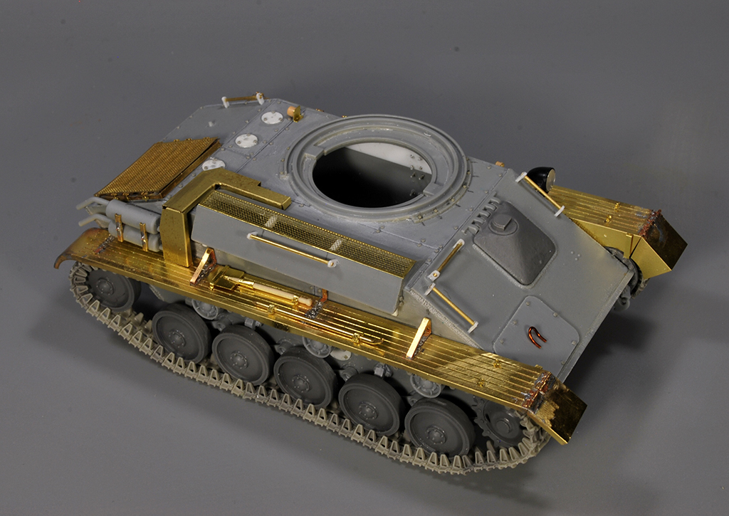 -заменил надгусеничные полки на фототравление. Дебаты о том что на Т-80 были полки без канавок я не поддерживаю. Существует всего пара фотот одной и той же машины с полками без канавок. И новодельные полки на машине из Кубинки. Поэтому вариант того что на Т-80 были полки как и на всех серийных Т-70 и Т-70м мне кажется более достоверным.