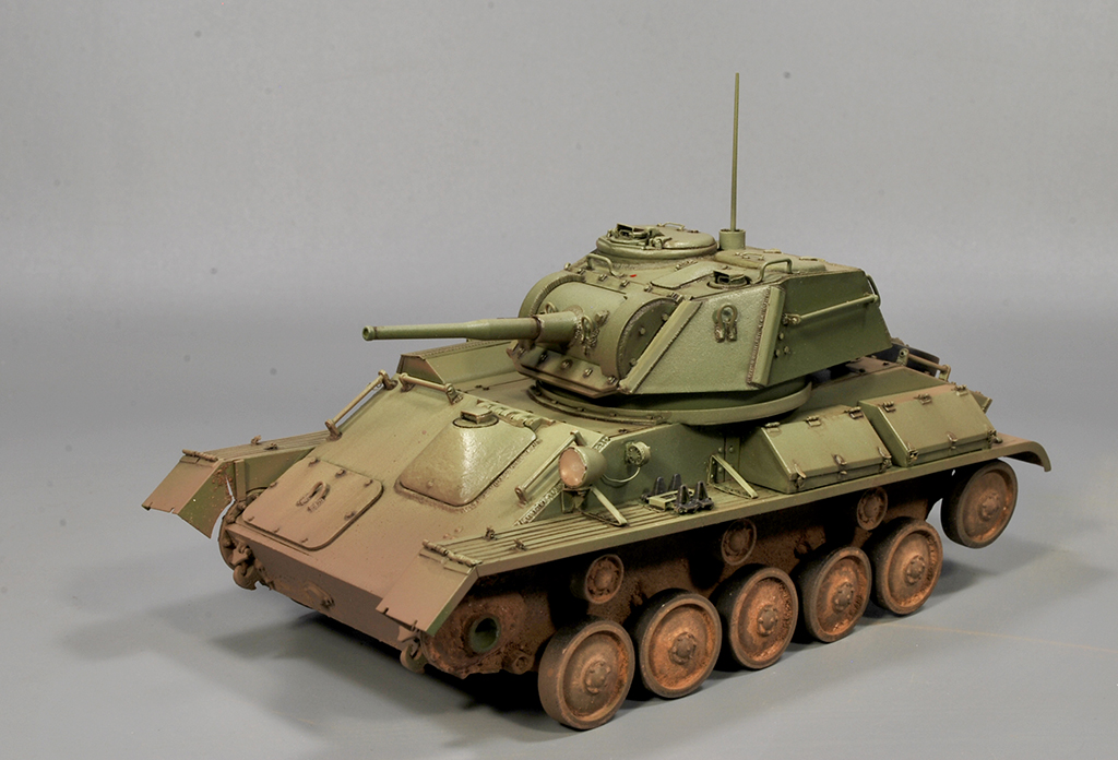 Отлично получилось. Провис на траках лучше не делать. Мне на моей модели это выставили как замечание. У америкосов лента была сильно натянута. А вот соединение траков производитель даёт не верно. Там какие то пупырышки. Их лучше срезать и сделать углубления.