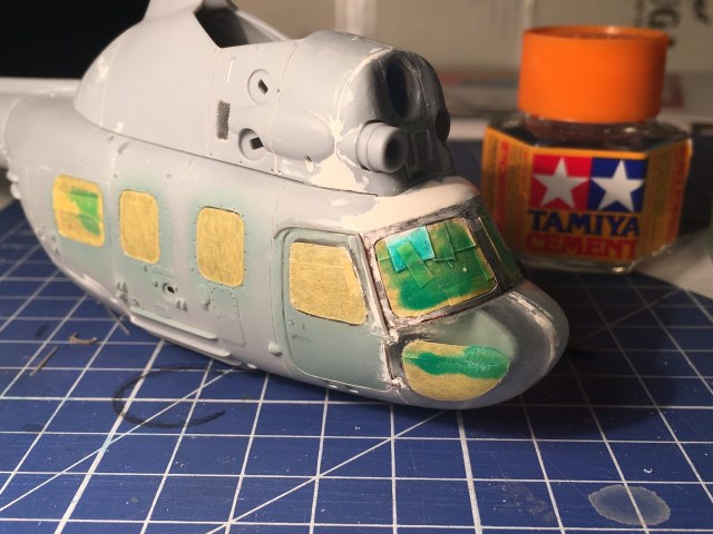 Самое забавное что я забыл приклеить полосы на самодельное стекло))) Вспомнил про них уже когда приклеил нос к фюзеляжу.