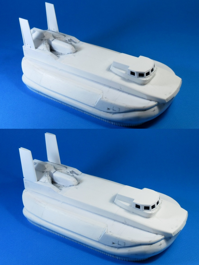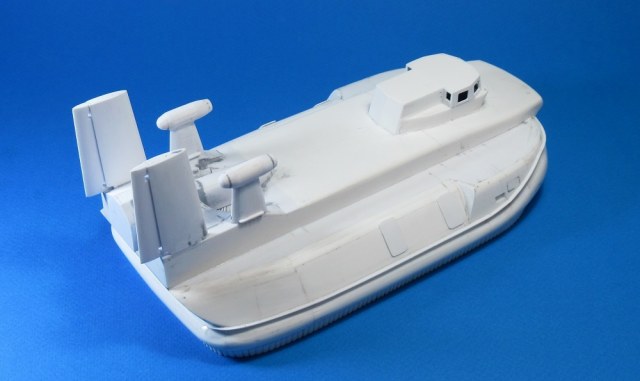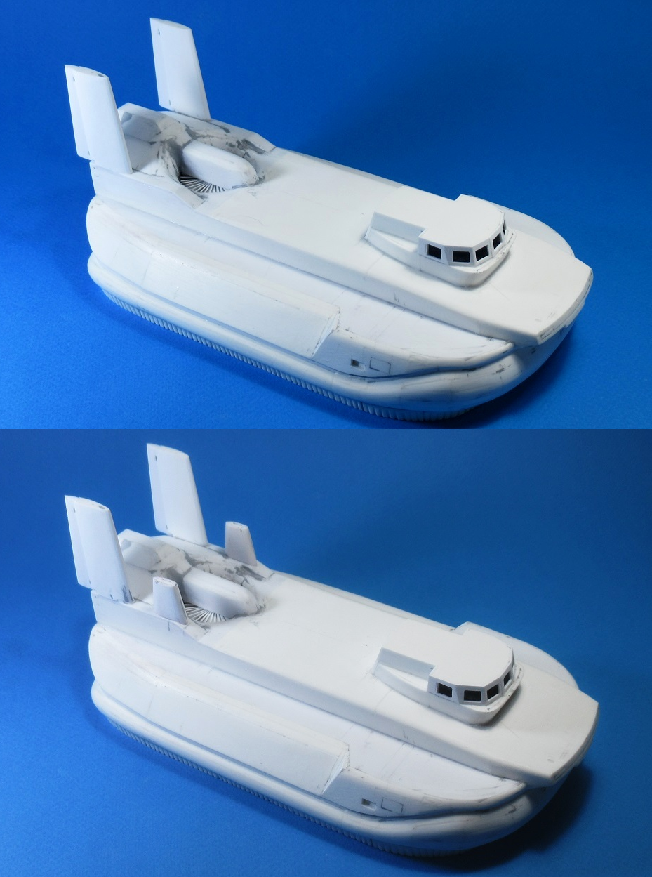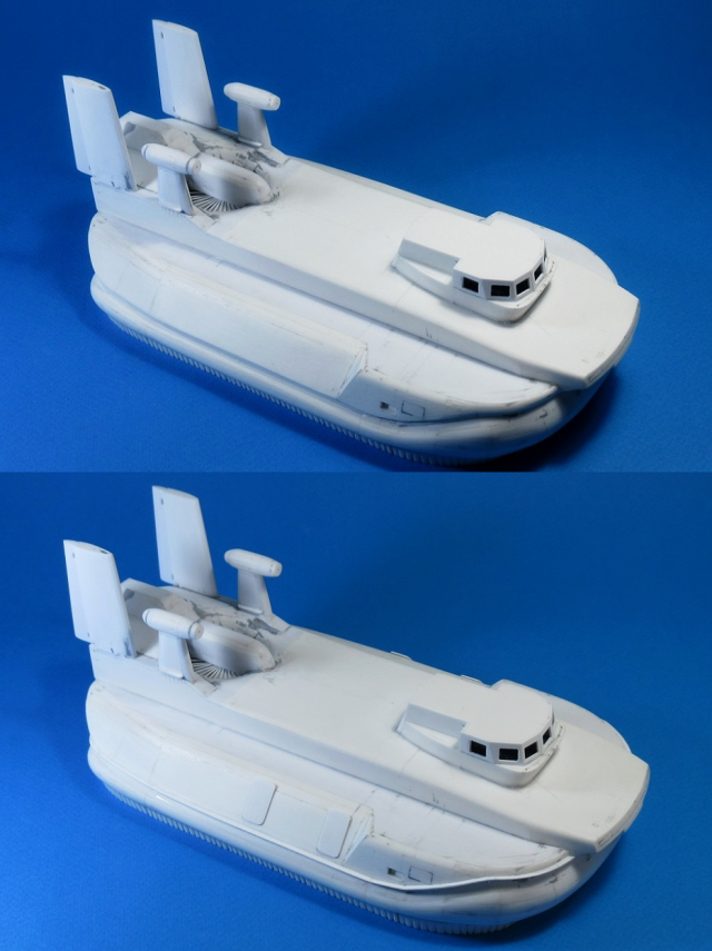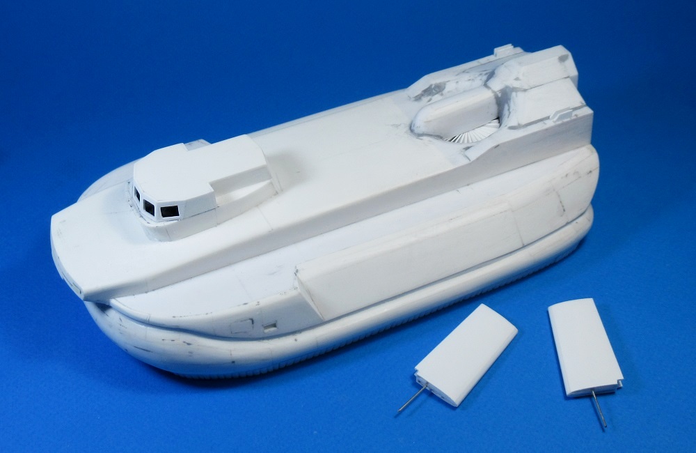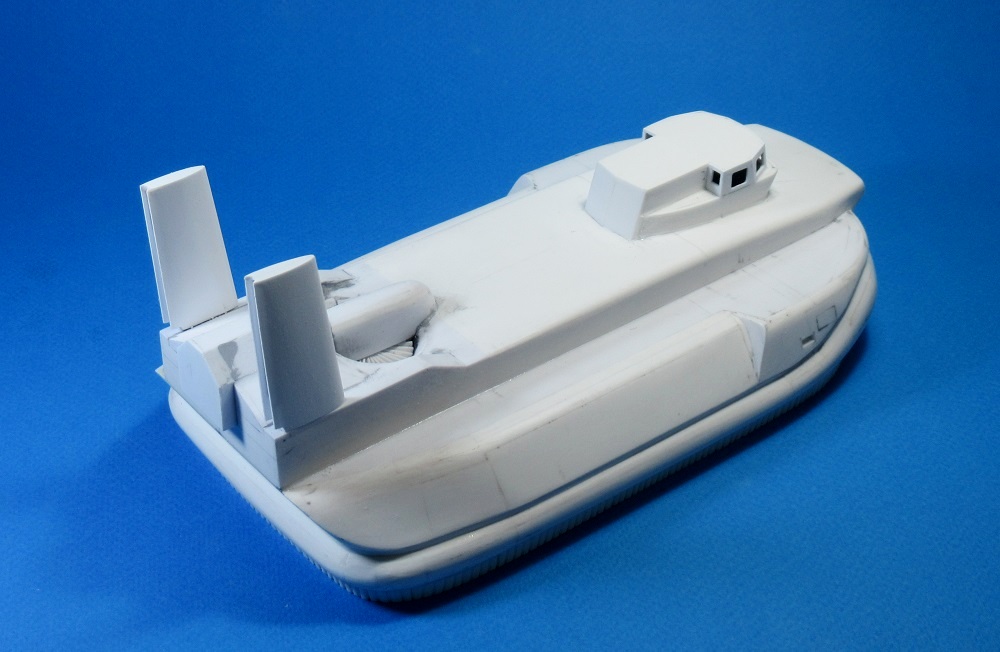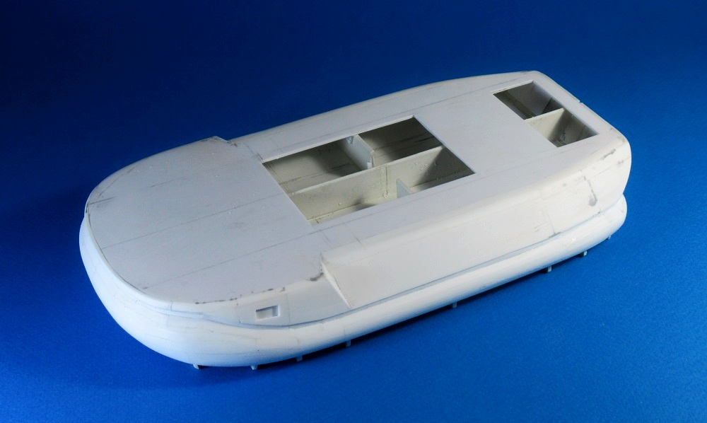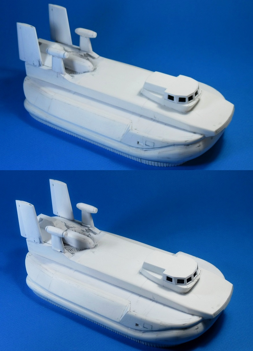 Обработал борта и корму "юбки", а затем налепил полоски пластика на носовую часть. Теперь жду до завтра...