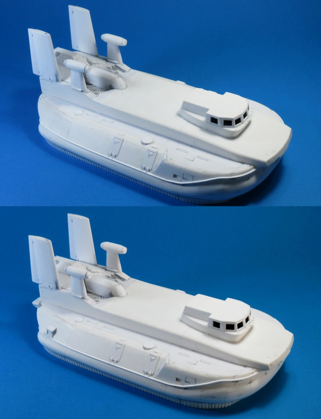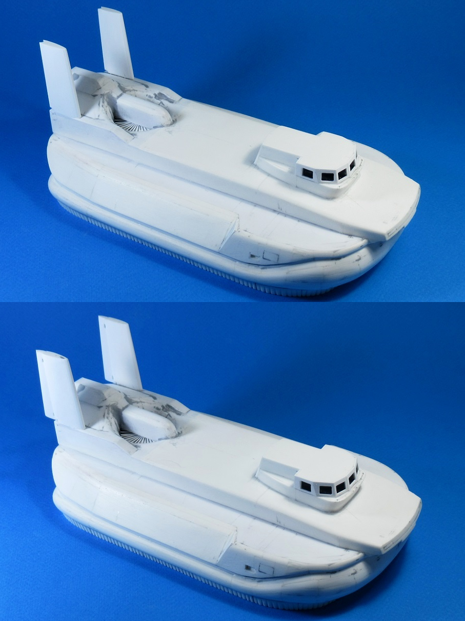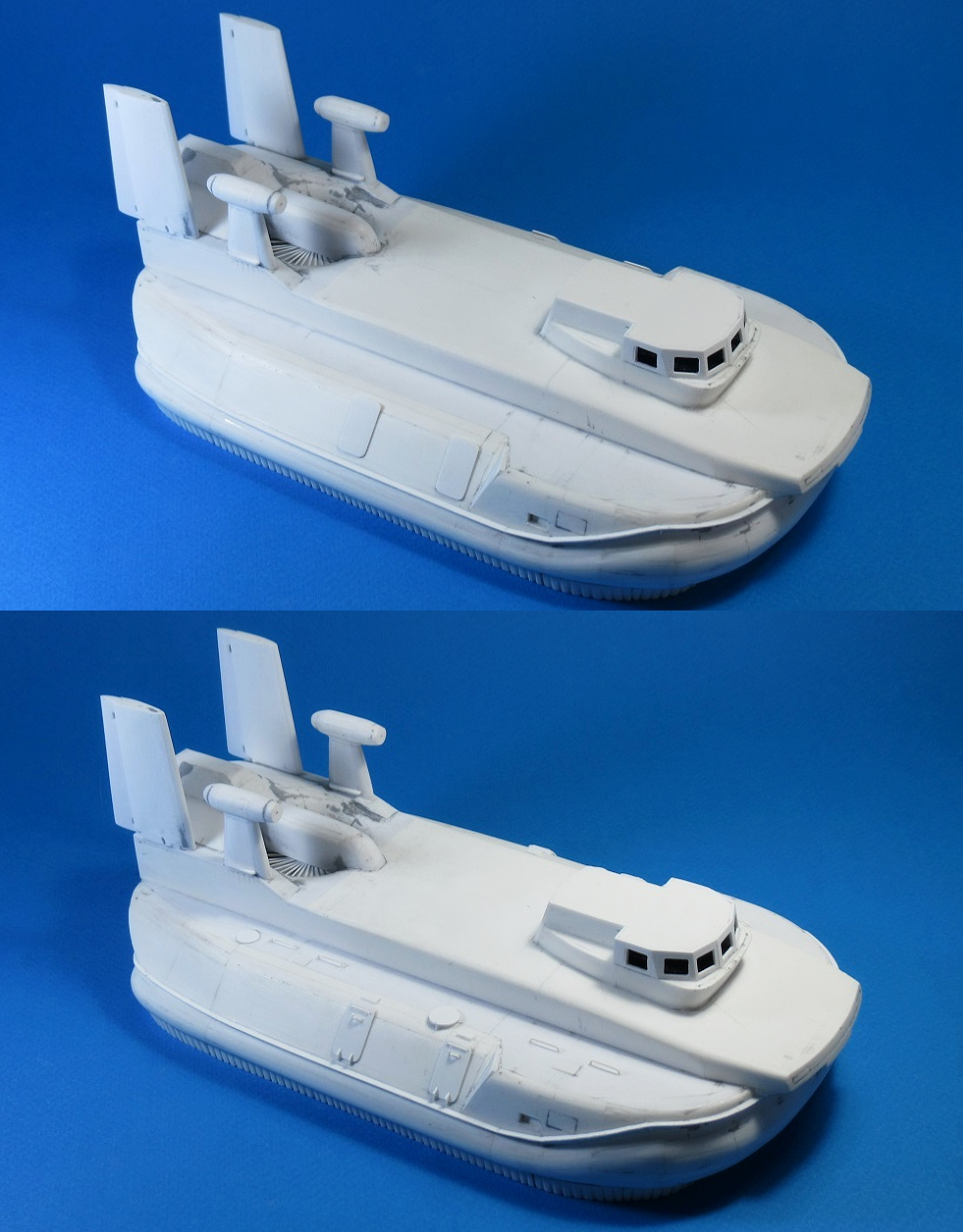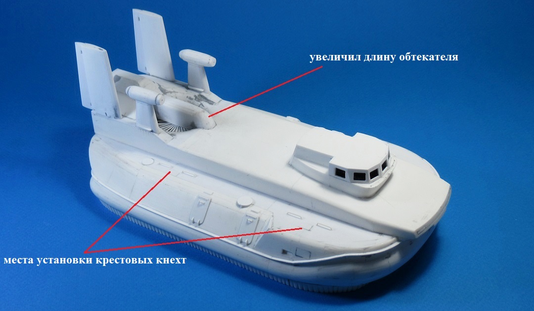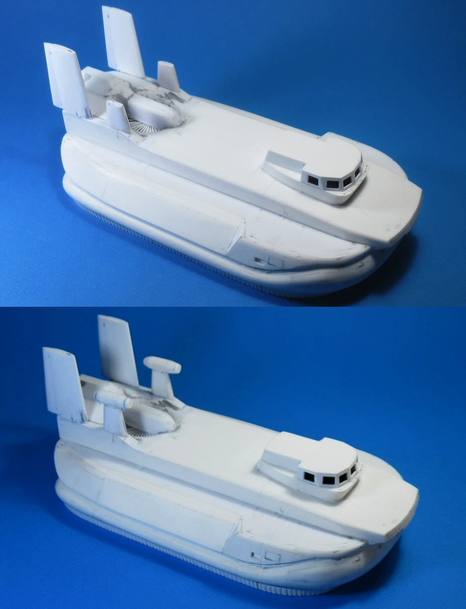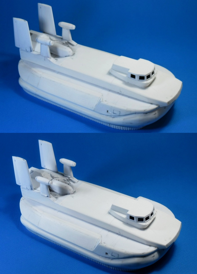 Обработал борта и корму "юбки", а затем налепил полоски пластика на носовую часть. Теперь жду до завтра...