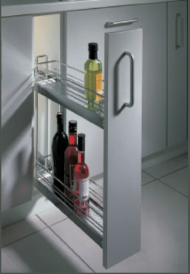 Возиться с одним столом - мороки больше. Вам надо было заказать распил с кромкой и обсадкой. И, мое мнение - вместо кучи маленьких ящиков, лучше смонтировать выкатные кухонные ящики - бутылочницы.
