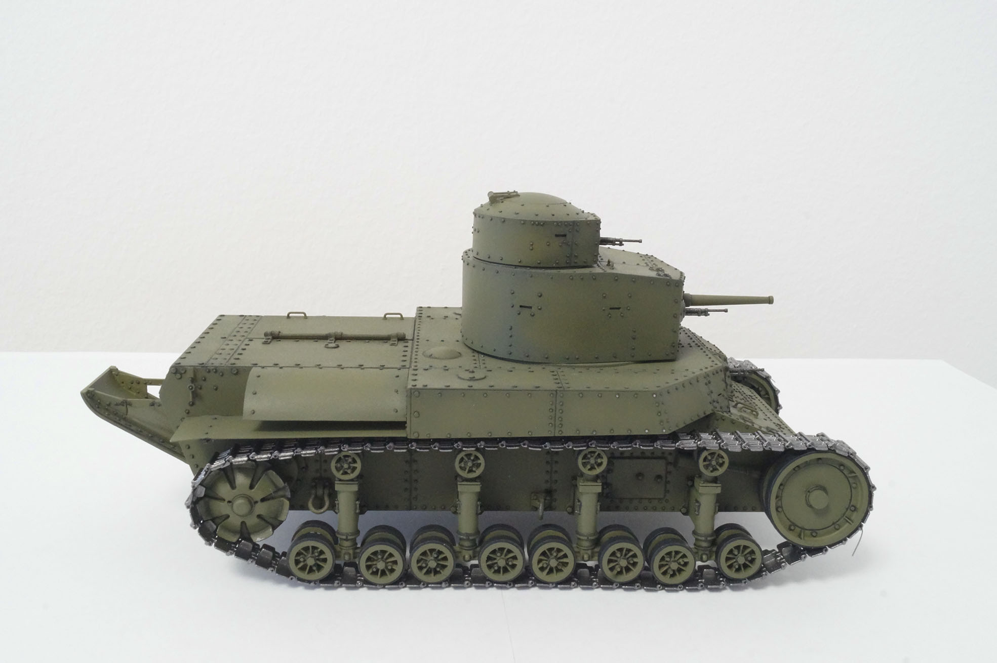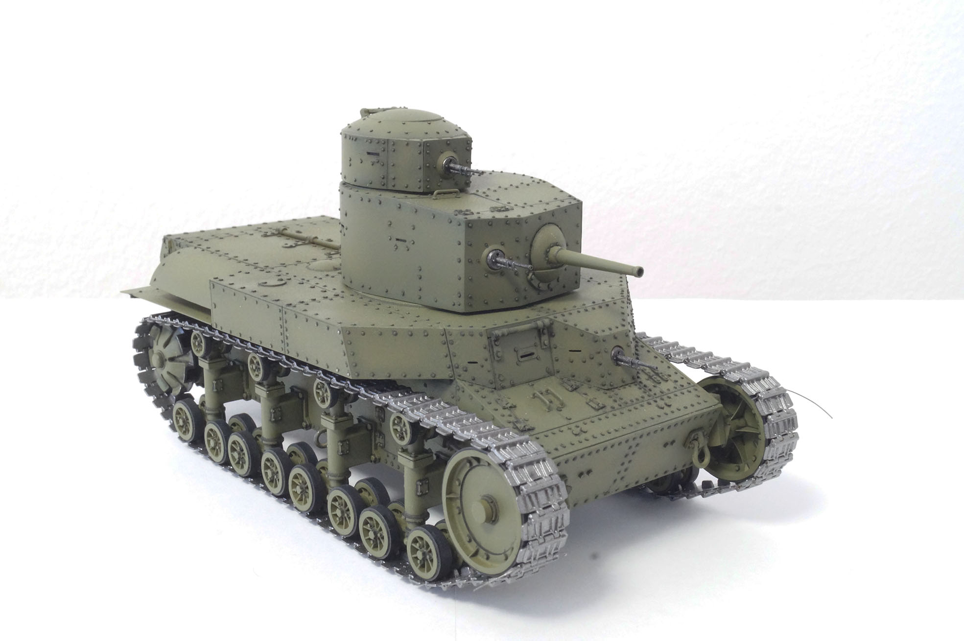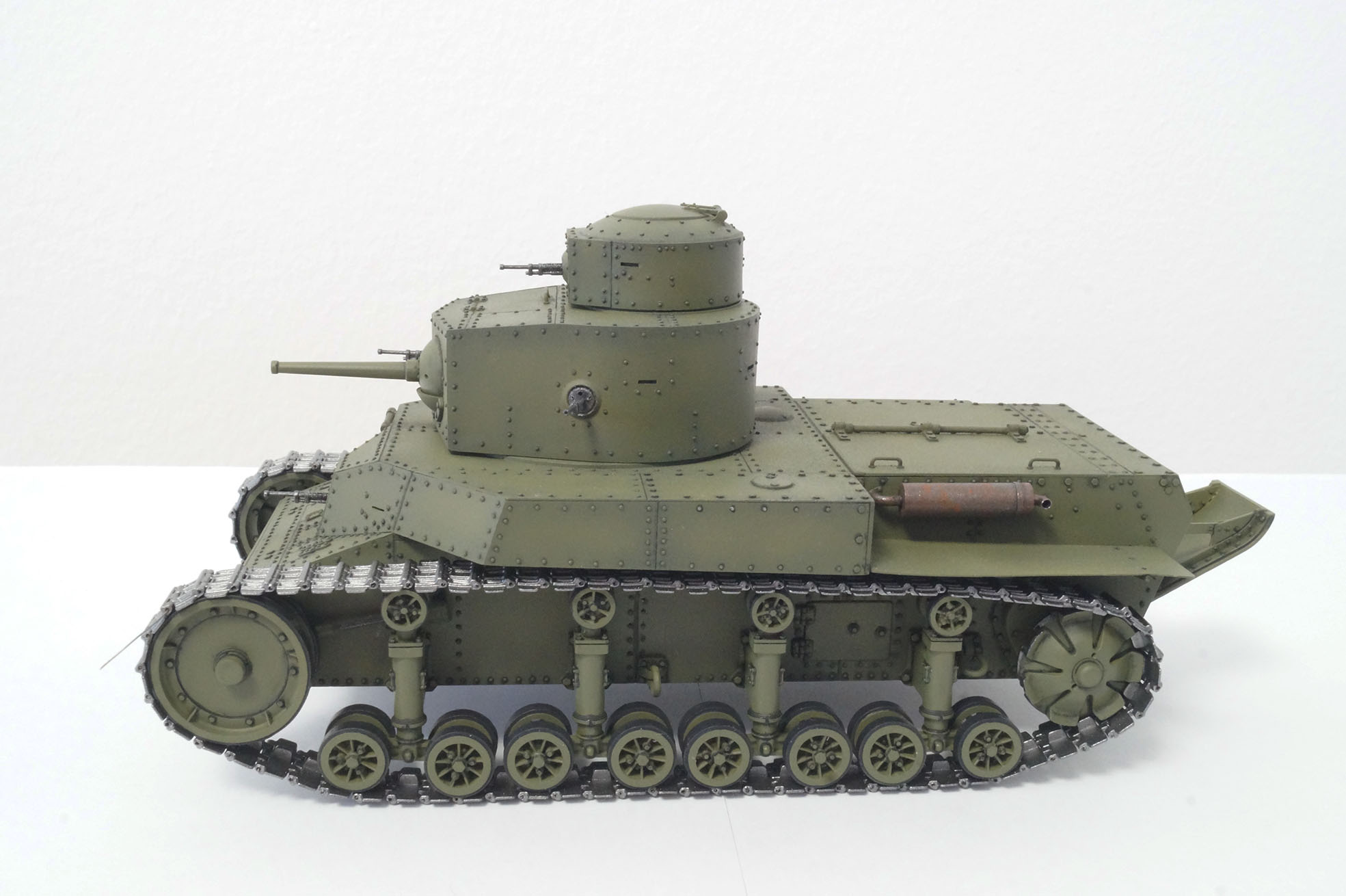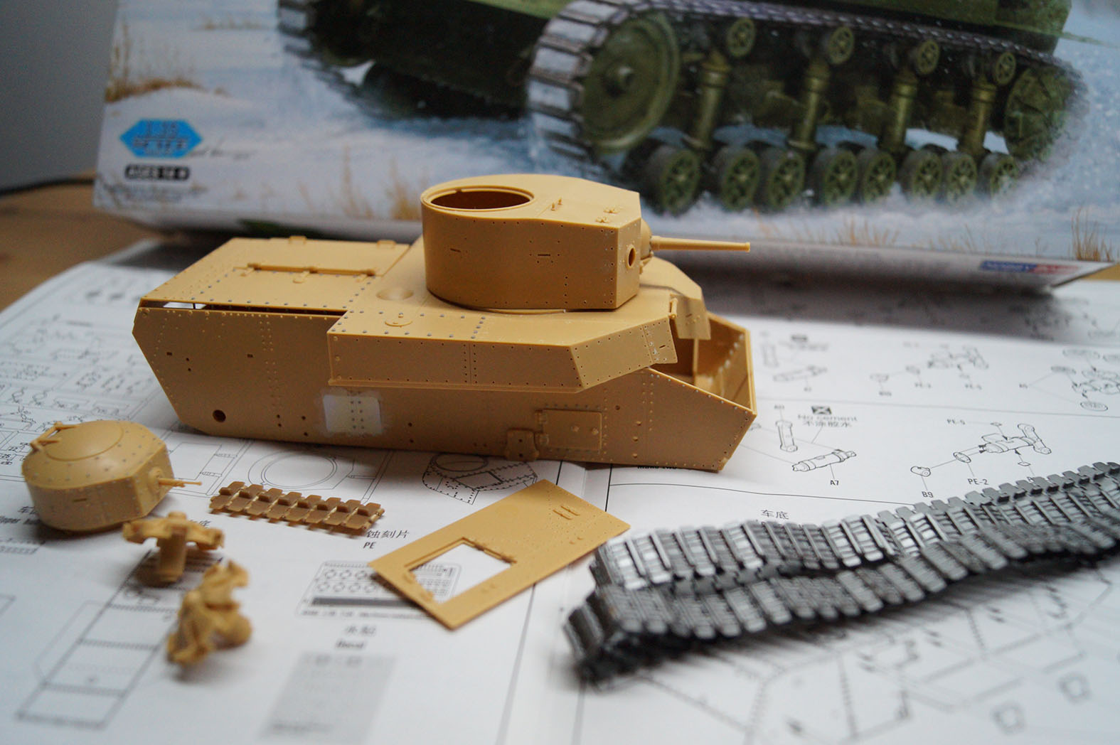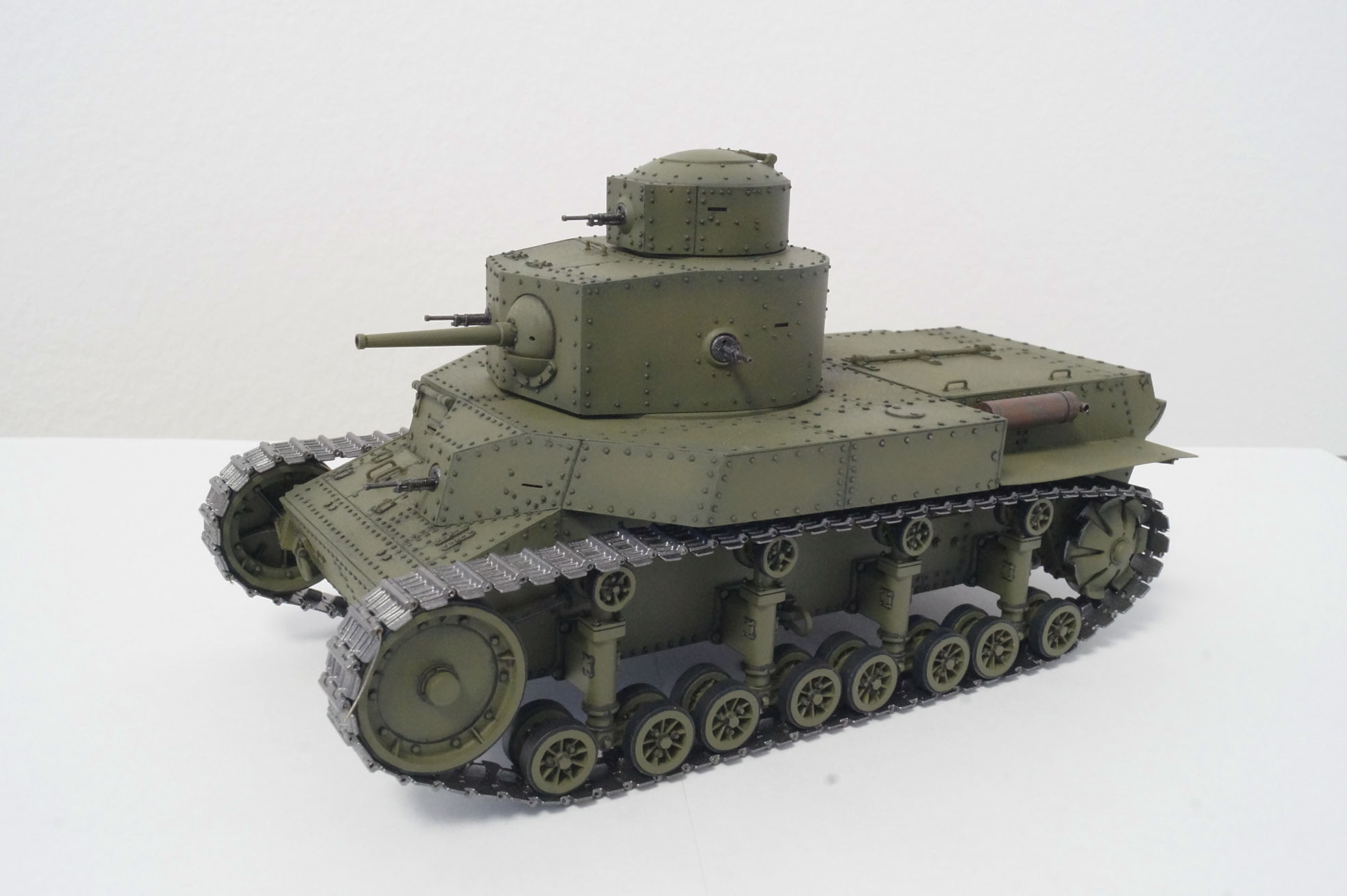 Когда впервые увидел, как и большинство каропчан и дишмоделистов, был в шоке от этой работы https://karopka.ru/community/user/6764/?MODEL=8288, и мной лет 6-7 назад была куплена коробка т-24 от китайской фирмы хобби босс и было решено, что я тоже смогу и сумею сделать так же круто))) Но набор оказался далек от совершенства и пришлось его отложить. Но теперь я уверен в своих силах, уверен в том что с могу закончить начатое, даже если получится плохо. Больше всего я не люблю "неоконченные сказки"и закрытые модельные фирмы. Идея простая: заменить пару клепок, чуток подработать и получить в крайне короткие сроки 1-2 месяца модель танка напоминающую т-24, без напрягов и авралов и желания бросить все на пол пути. И я думаю мне это по силам. Тотального запила не будет.