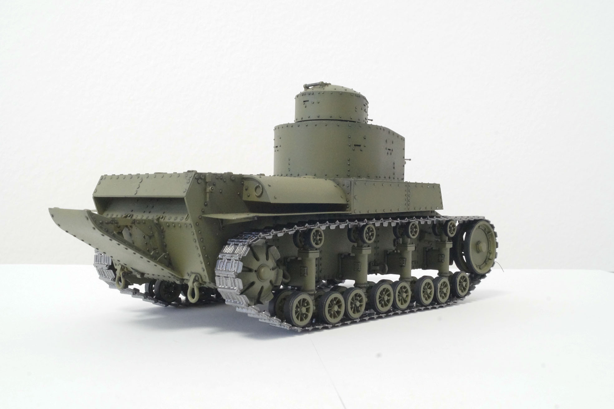 потом высветления. и теперь проект находится вот в таком виде, все открывается, все подвижное: перископы, зенитная турель, пулеметы, фары, все люки, гусеница, но пока нет интерьера. Как то так. Будет ли готов в этом году - не знаю.