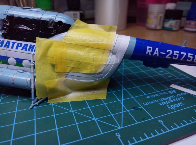 Когда снял маски понял что темно синий не тот который нужен, хотя подбирал долго. Пришлось опять маскировать и менять оттенок