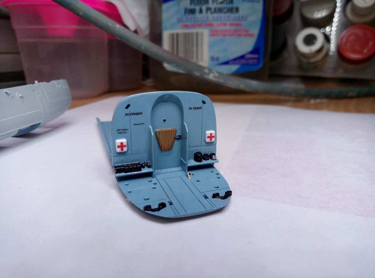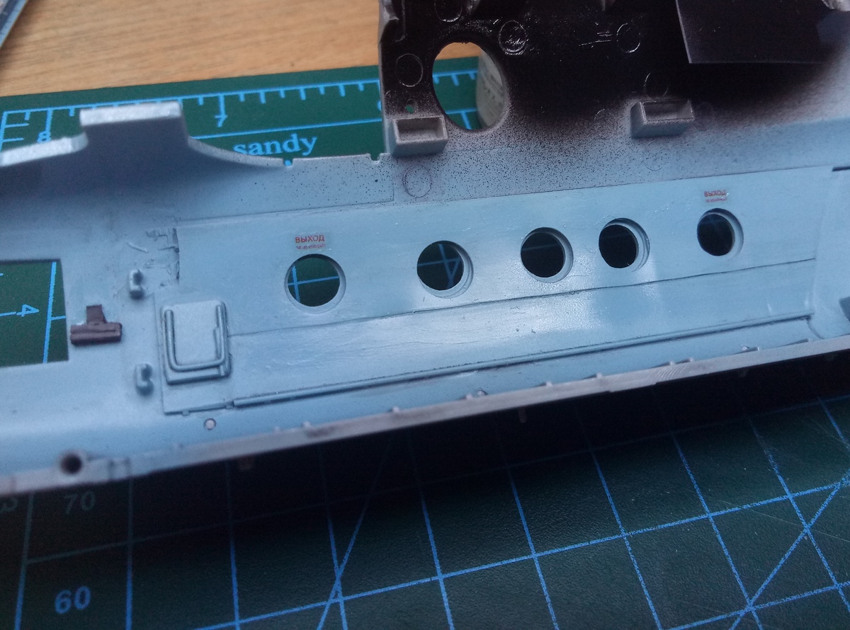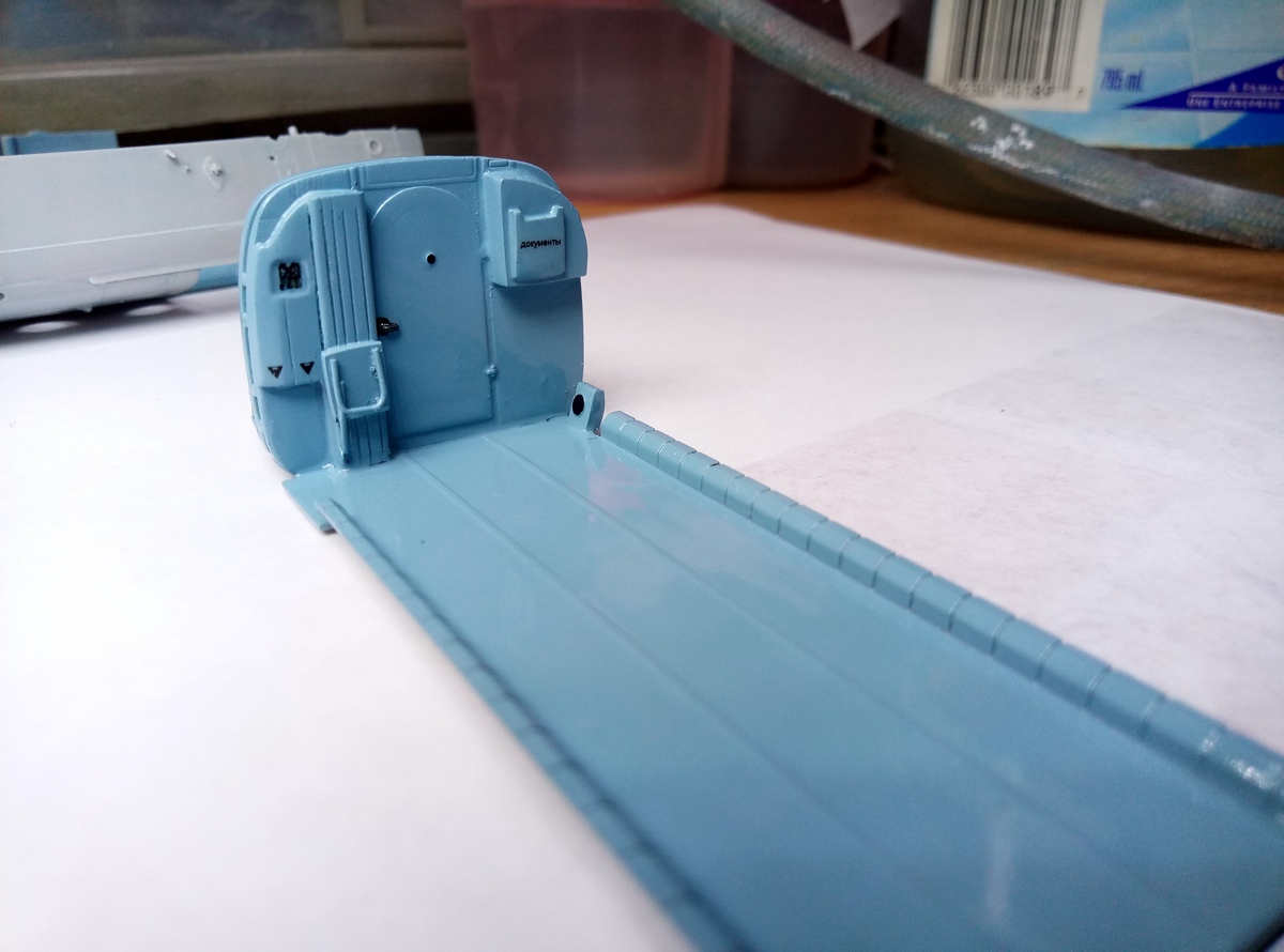 Заделал дыру в двери сымитировал глазок. По фото сделал детали в углу грузового отсека.