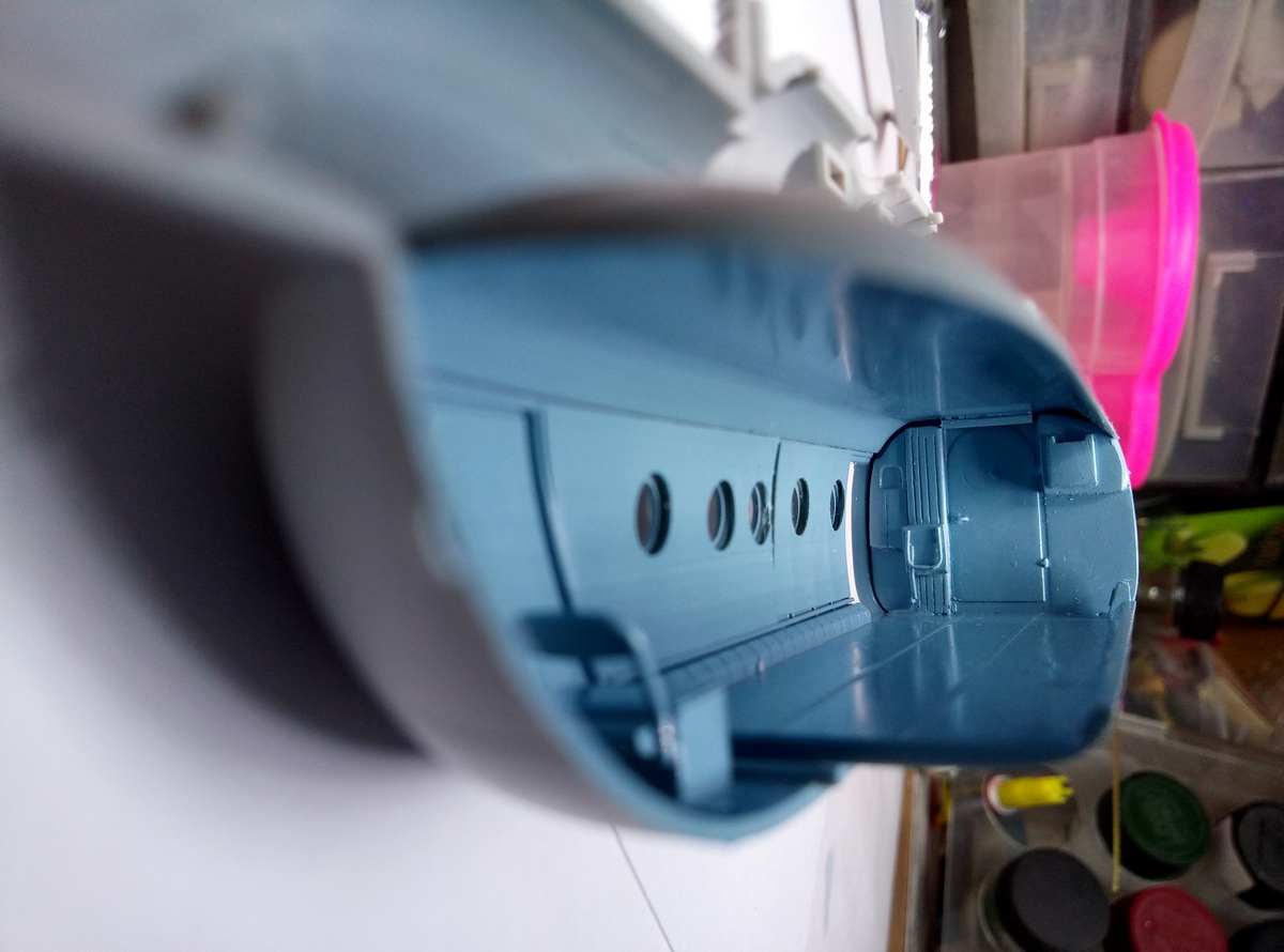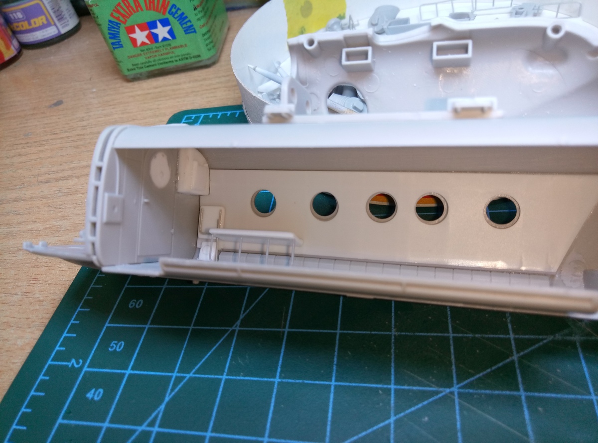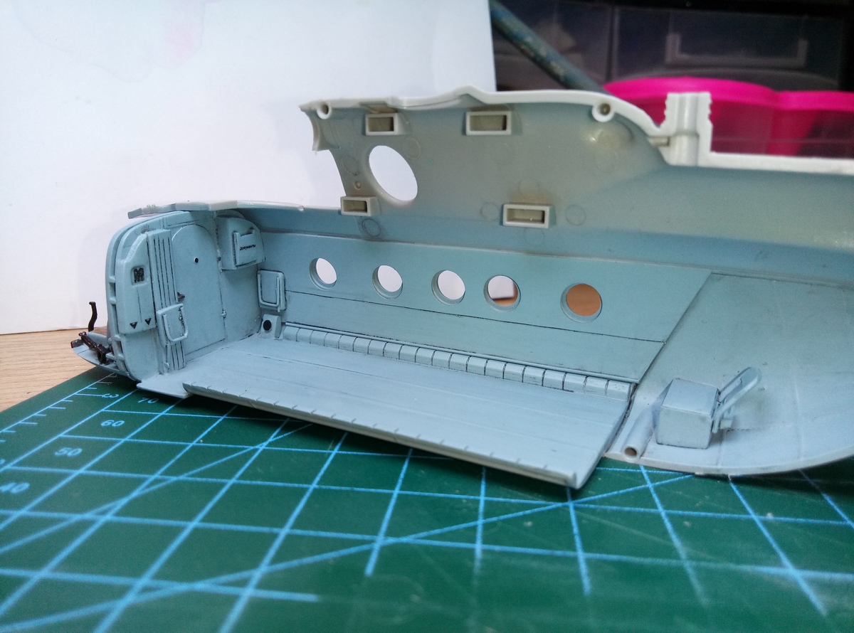 Заделал дыру в двери сымитировал глазок. По фото сделал детали в углу грузового отсека.