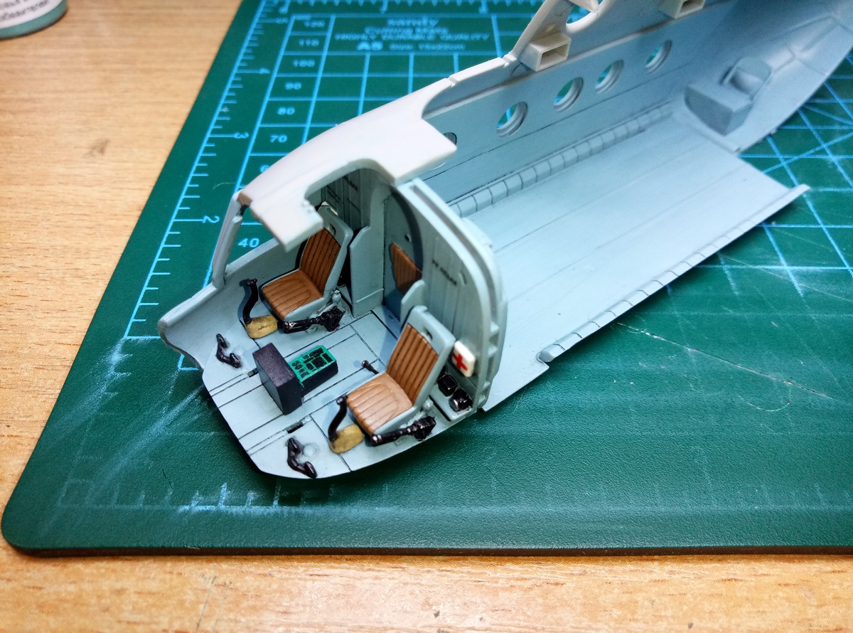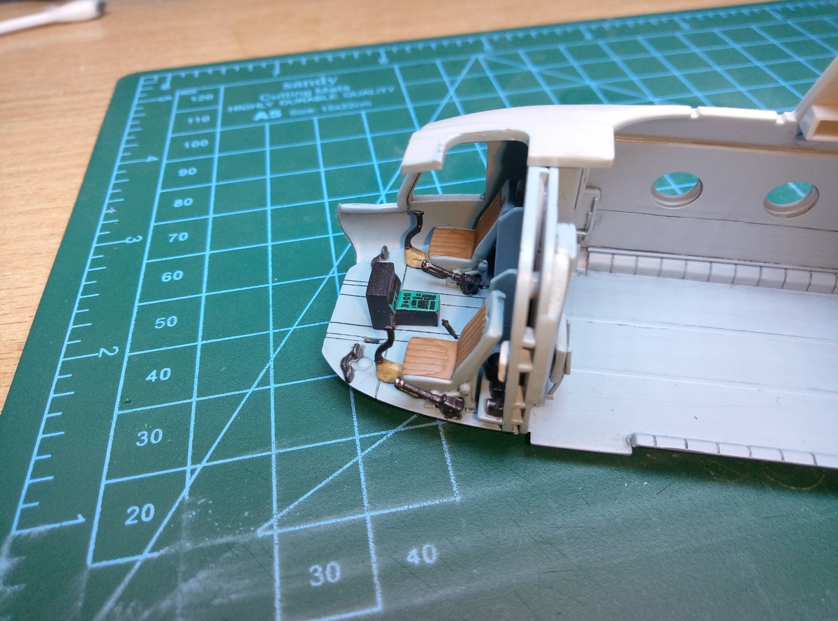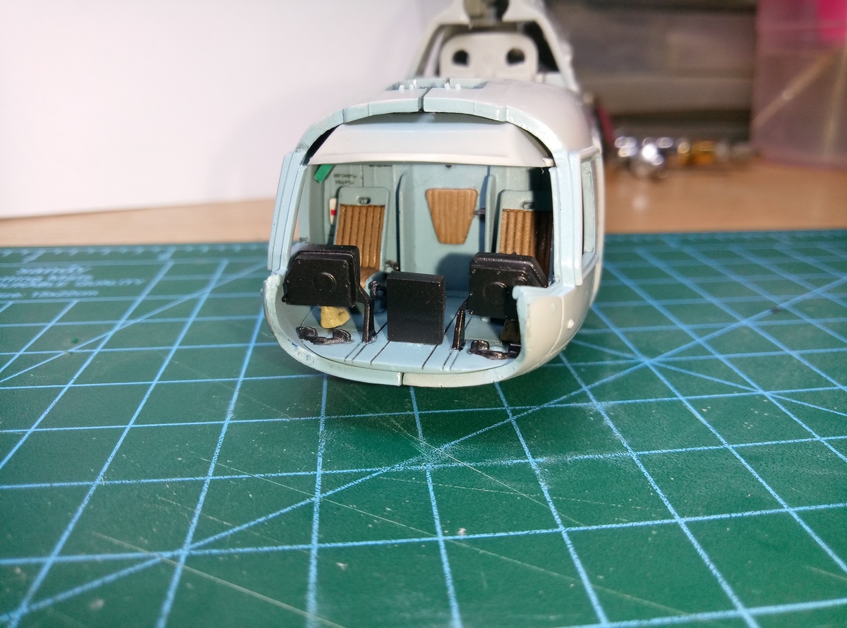В целом, не плохо. Только бедному борт.механику тяжко будет по 8 часов летать стоя. Откидное сидение необходимо сделать. Его и видно будет через остекление. А опущенное или поднятое, это на Ваше усмотрение.