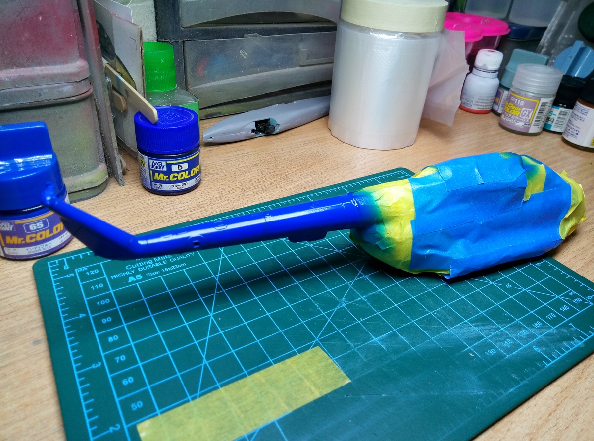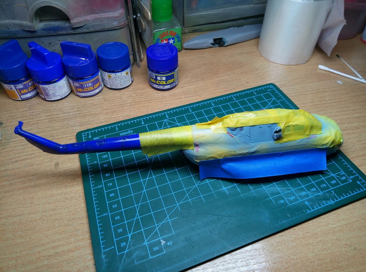 Опять маскировка и нанесение темно синего и маскировка под черный.