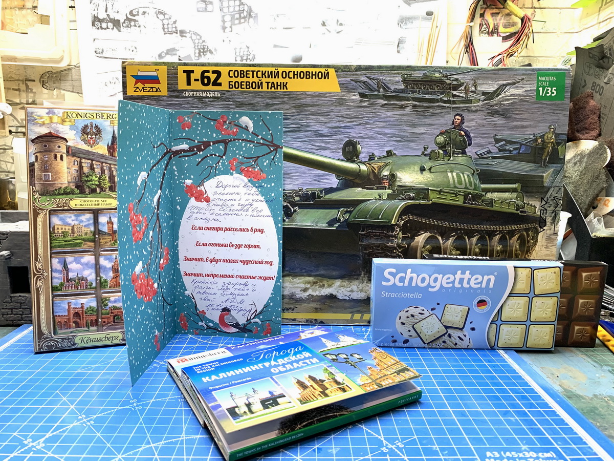 Спасибо моему Деду Морозу Дмитрию Иванченко из славного города Калининграда! Открыл я значит посылочку, а там т-62 (планировал ее на будущее)