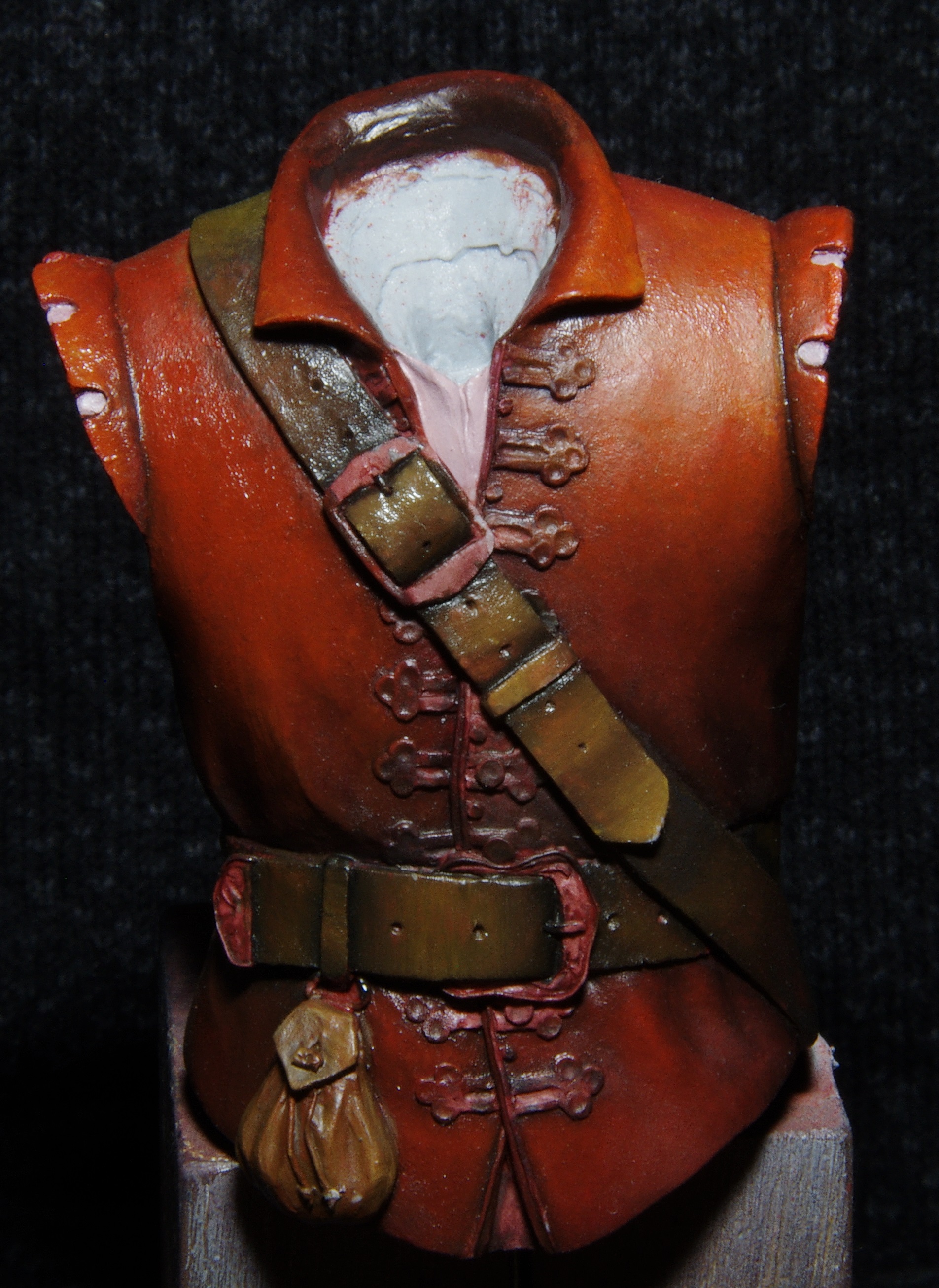 1 этап - зачистка фигуры от швов и приливов, грунтовка темперой в базовые цвета выбранного костюма.