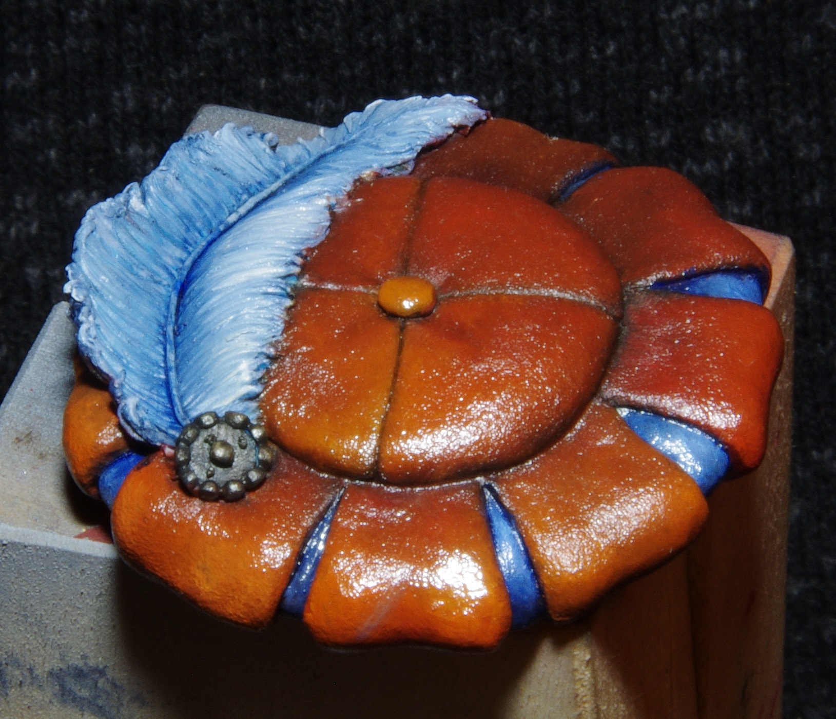 6.Намечаем глаза у фигуры тонкой кистью. Т.к тут они вылеплены с прищуром, то и прорисовывать особо ничего не надо. Просто ставим аккуратную черную точку.