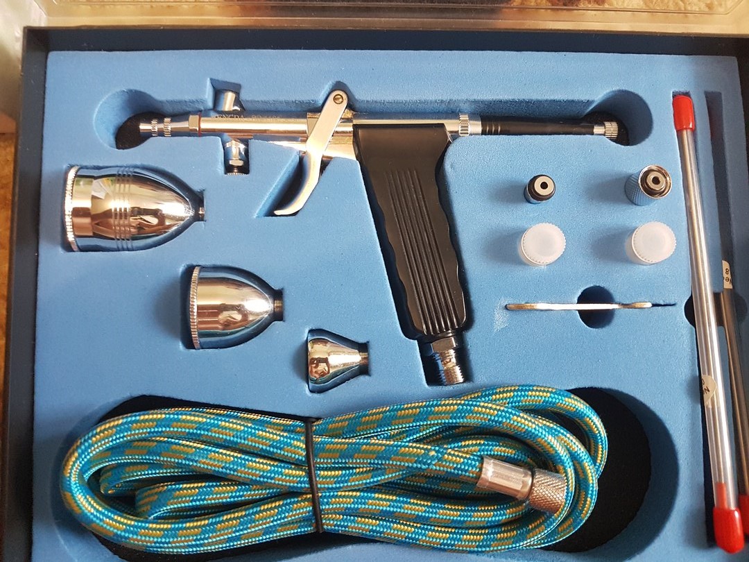 недавно приобрел аэрограф и компрессор...плюс мелочи....радости не было конца пока не стал подключать и красить модель..... красил звездой слегка разбавленной...нооо....почему то краска распылялась не равномерно.... то прям все заливала...подкручивал кол во подачи краски .... эффект тот же.... кто-то чихнул на модель.... фото компрессора и аэра ниже....