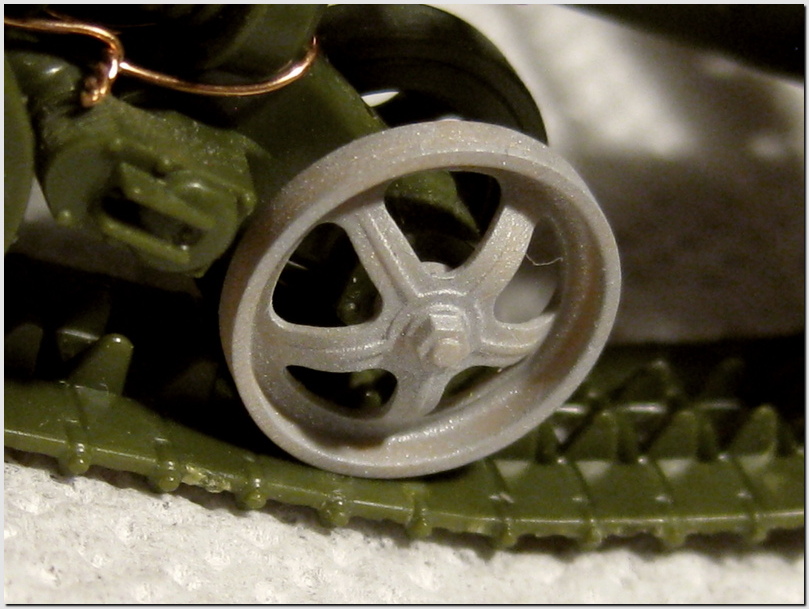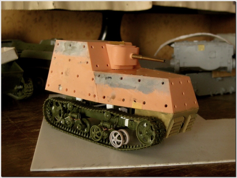 По ходовке. Чуть укоротил пружины (пока не клеил, стянуто проволокой), дабы показать просадку от веса брони.