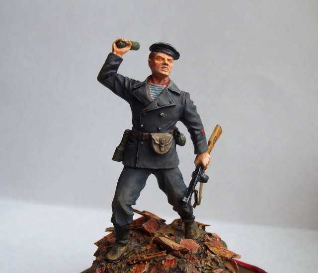 Цитата:Отличная роспись, единственно, мне кажется (хотя могу ошибаться), цвет формы должен быть серо-голубой, приблизительно такой как на сухарной сумке.Ошибаешься,серо-голубой был в начале войны.Позже пошел уже чисто серый,хотя оттенков у него было много,от серо-коричневого до серо-зеленого