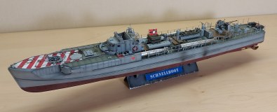 Полосы красно-белые такие в Кригсмарине применяли на прикомандированные боты на Средиземноморском ТВД, идентификация свой-чужой, единообразно с итальянцами.