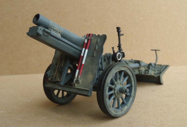 Не много, расскажу, о доработках.Орудие в транспортном положении, так, как будет частью диораммы.Добавил обрезинку на колеса, крепеж шанцевого инструмента, лопата-самопал.Рассверлил крепеж для установки на сау,сделал пробку на ствол(потерял ремешок), колышки сделаны новые. Фару рассверлил и вклеил новую защиту. Добавил недостающие клепы и ребра жесткости. Огромное спасибо, Володе Слюсареву, за очень удачную фотоссесию!