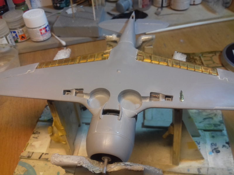 Приветствую коллеги!Небольшое продвижение по проекту ;постарался довести ниши до соответствующей формы,сделал гильзосбросы ,и задул грунтом мр.хобби белый,нанес металлик дюралюминий от пацифика,для меня так вполне годный,и немного прешейдинга,хотя уже и говорят что это устарелая техника,пока не отказываюсь от сего приема.Пока все ,всем удачи в стройках.