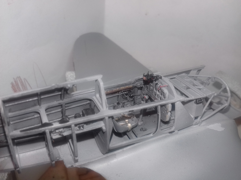 Приветствую коллеги!После перерыва на отпуск взялся за дело таки,закончил возню с кокпитом,установил прицел,ремни кресло,рычаги перезарядки,ракетницу,рамку под фонарем.Подготовлен в малярку,осталось приклеить кожухи на бомбодержатели.Если я не ошибаюсь на Ла-5 они должны быть.Если ошибаюсь жду коменты от знатоков матчасти.Всем удачи в стройках!
