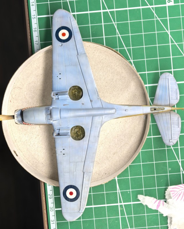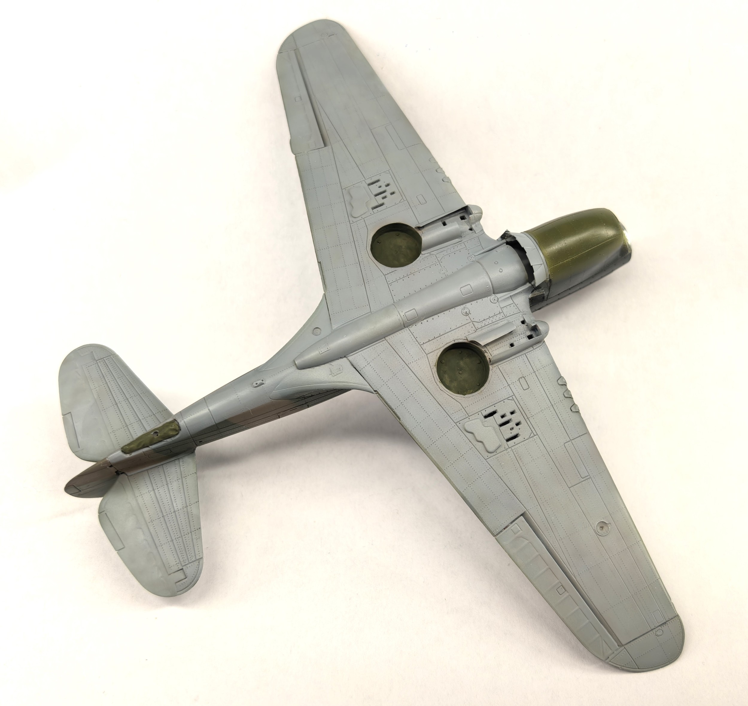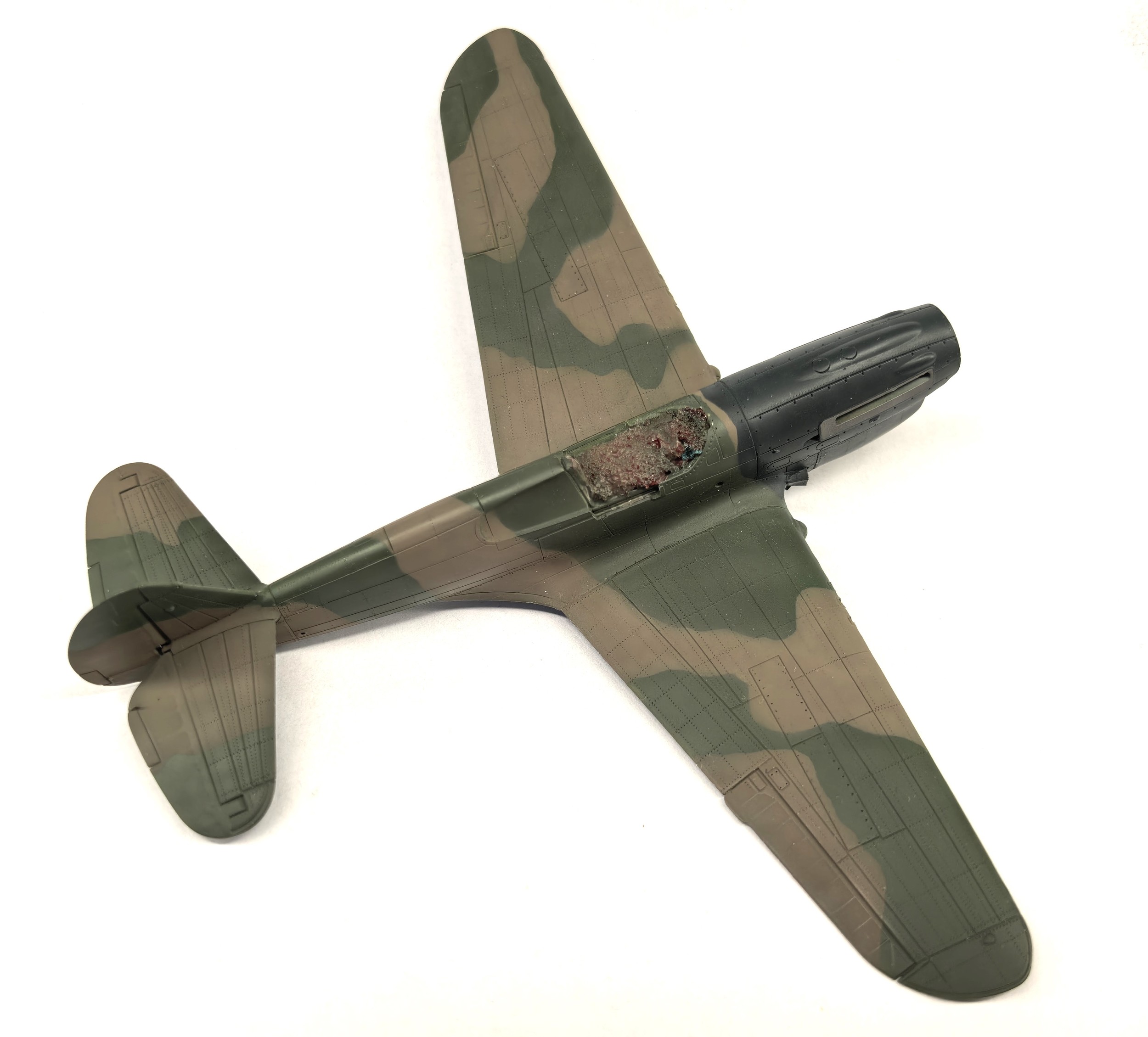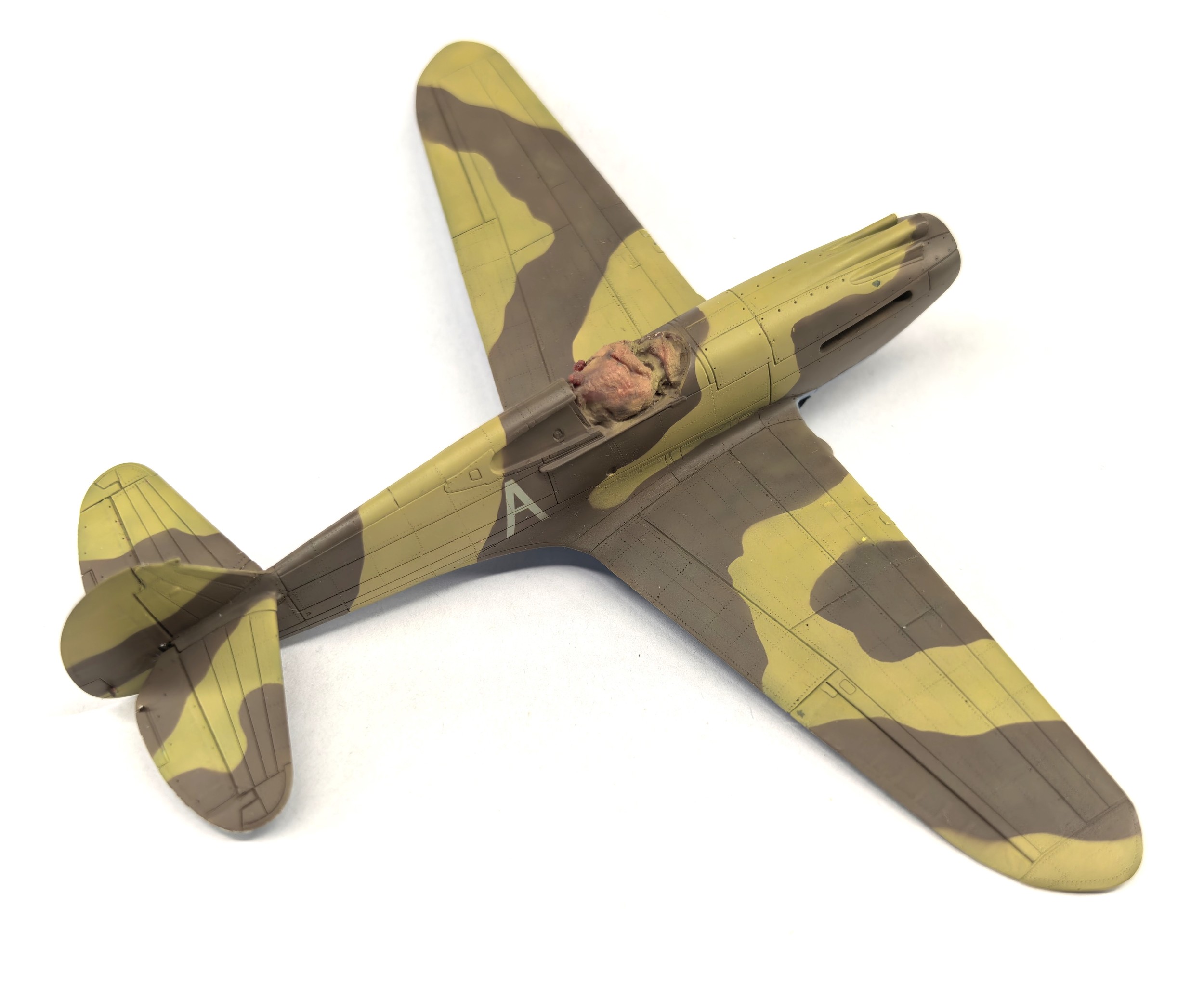 Для американца сделал ранний подвесной бак (на фото прототипа он виден) и тоже окрасил верх Tamiya LP-28 Olive Drab. OD от Mr.Hobby C-304 тоже оказался какой-то странный, он больше на зелёный хаки похож.