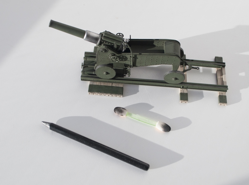 Стальной цвет орудия выглядел не вразумительно. Решил его модфицировать для большей реалистичности. Поверх Валеховской стальной краски натер графитовой пудрой.