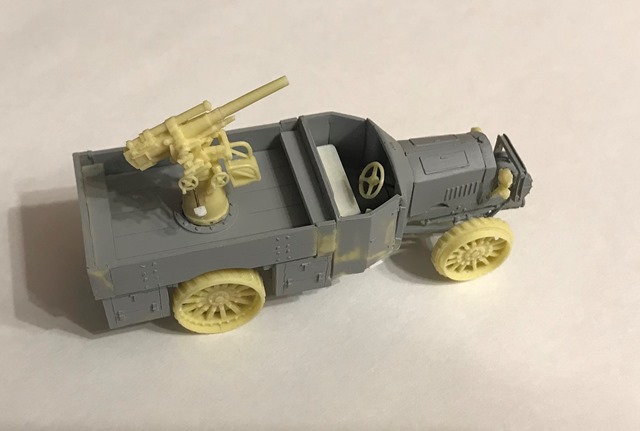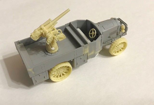 Покрыл шпаклевкой маску пушки, дабы имитировать брезент.