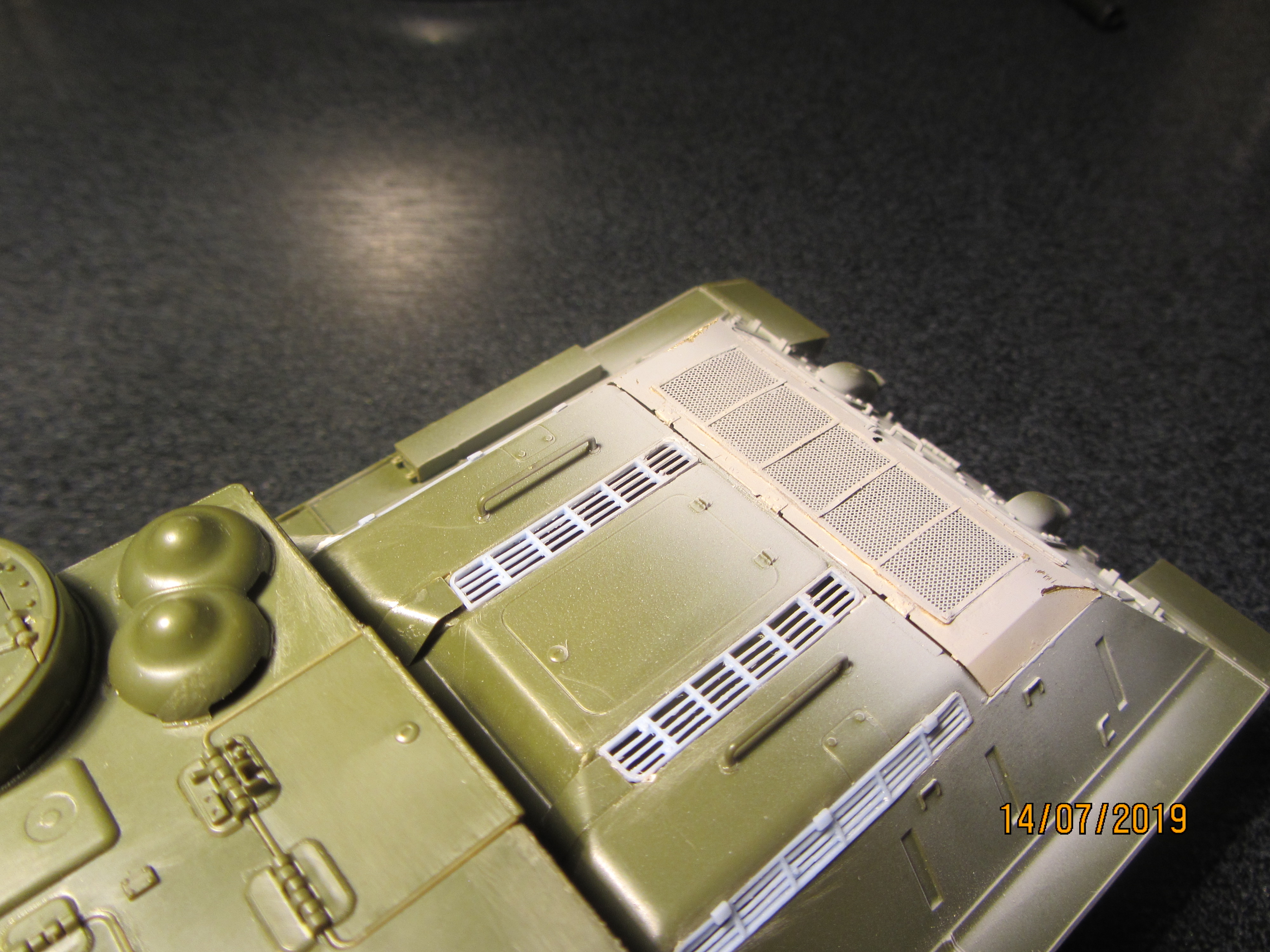 Приветствую товарищи моделисты. Собираю модель Су-100 от Звезды и первый раз попробывал поработать с фототралением. Сделал крышку МТО, но получилась в оконцовке вот такая щель между корпусом и крышкой. Как считаете это критично и что посоветуете сделать? Может зашпаклевать или все же оторвать если получиться и заново приклеить ?