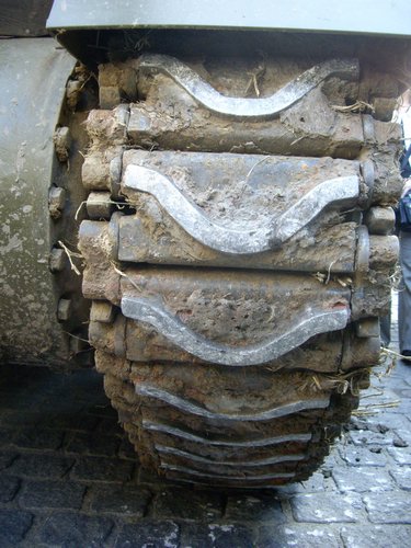 Уширители (по английски они называются duck bill - утиные носы) шли только с одной стороны гусеничной ленты. Кроме того они не обязательно цеплялись на каждый трак, допустимы пробелы в два-три трака. Проблема в том, что они позднего типа. На траки Т74 (именно их вы пытаетесь изобразить) обычно одевались ранние "носы" (как на фото в сообщении 182). В принципе, "утиные носы" - необязательный девайс. Их применяли только при реальном бездорожье (например, в Арденнах).