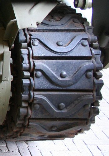 Но если и второе ухо полосы, крепящей траки, тоже прикручено гайкой, то, похоже, быстрый демонтаж этих траков не предусматривался.