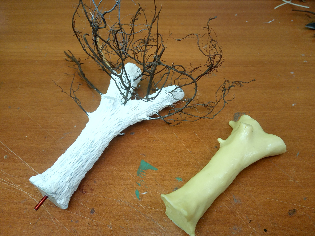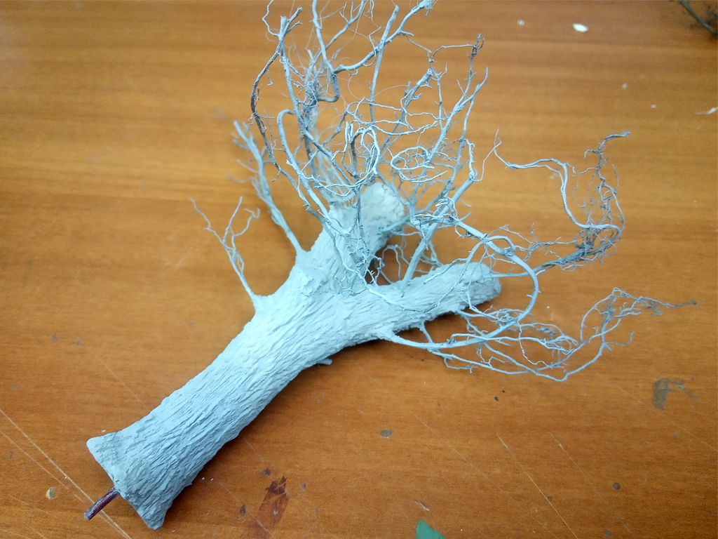 Параллельно с наполнением комнаты занимаюсь "улицей". Из смоляной заготовки и натуральных веток сделал дерево, кору сделал из шпатлевки.