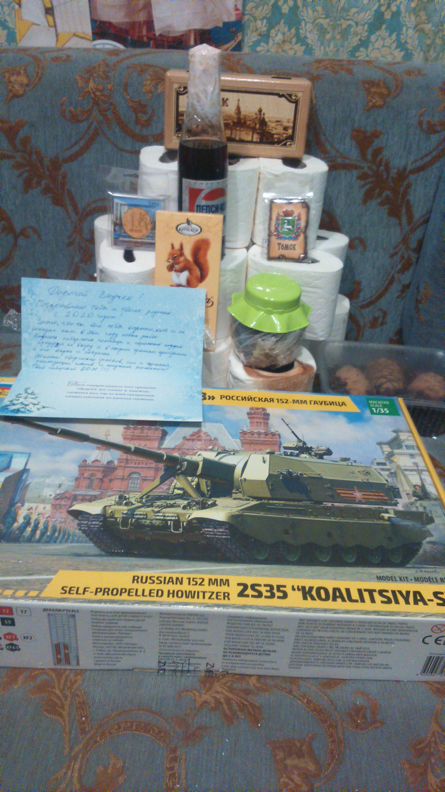 недавненько и я стал радостным внучком, Дедушка Александр Помозов из подмосковного Жуковского несказанно меня удивил в подарочке было все, чего можно пожелать: и модель, которую хотел давно, и плюшки к ней, и выпить-вкусить, и духовно развиться, и на елочку повесить, и на холодильник прицепить)