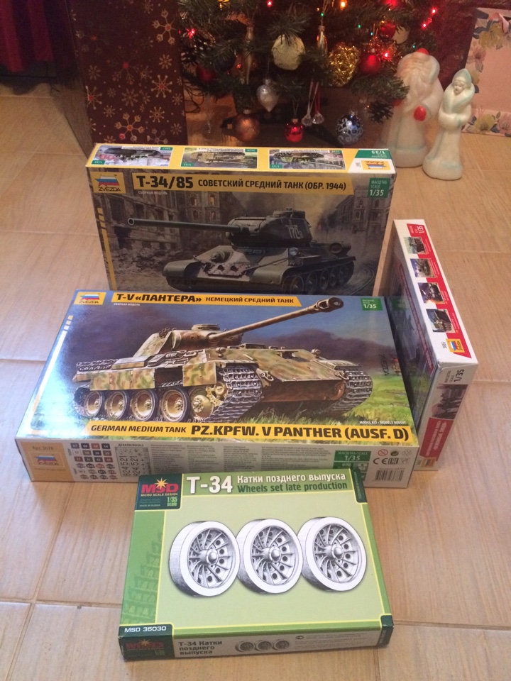 После вскрытия посылки, внутри меня ждали, отдельно упакованные, модели тридцатьчетверки с доп. точеным стволом, тросом и масками, пантера на Курскую дугу, катки на т-34 и вежливые люди).