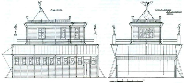 Перелистывая свою авиабиблиотеку, обратил свой взор на известный в узких кругах журнал "Крылья", а в нем на статью "Аэродром Ходынка". В ней приведены схемы архитектурных форм аэродрома. В частности: "Павильон Прохорова" и "Павильон Дукс".
