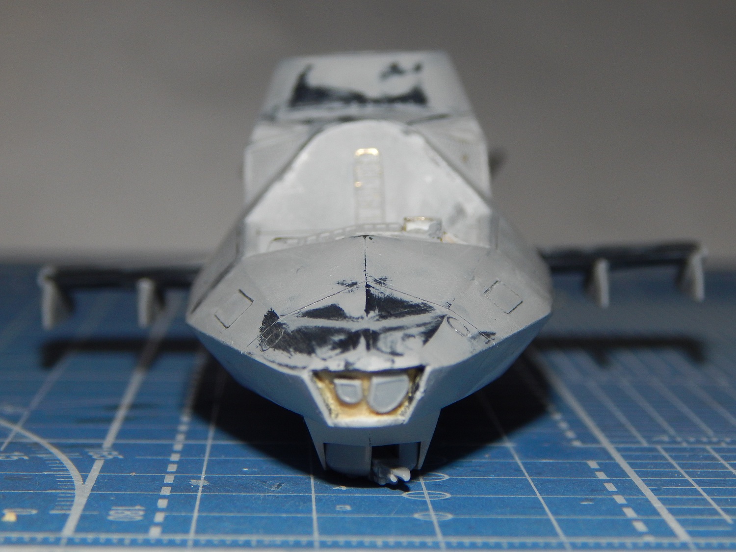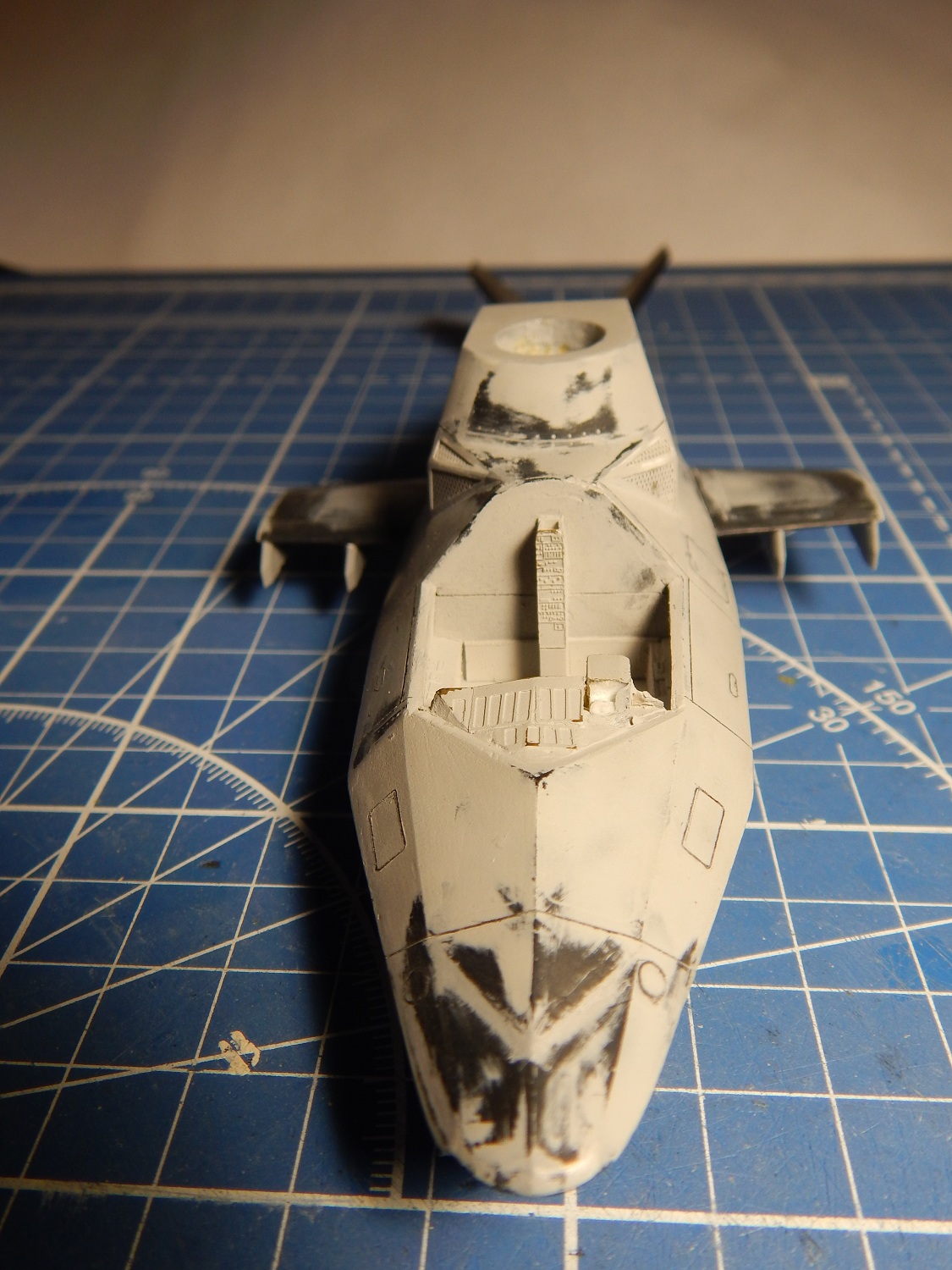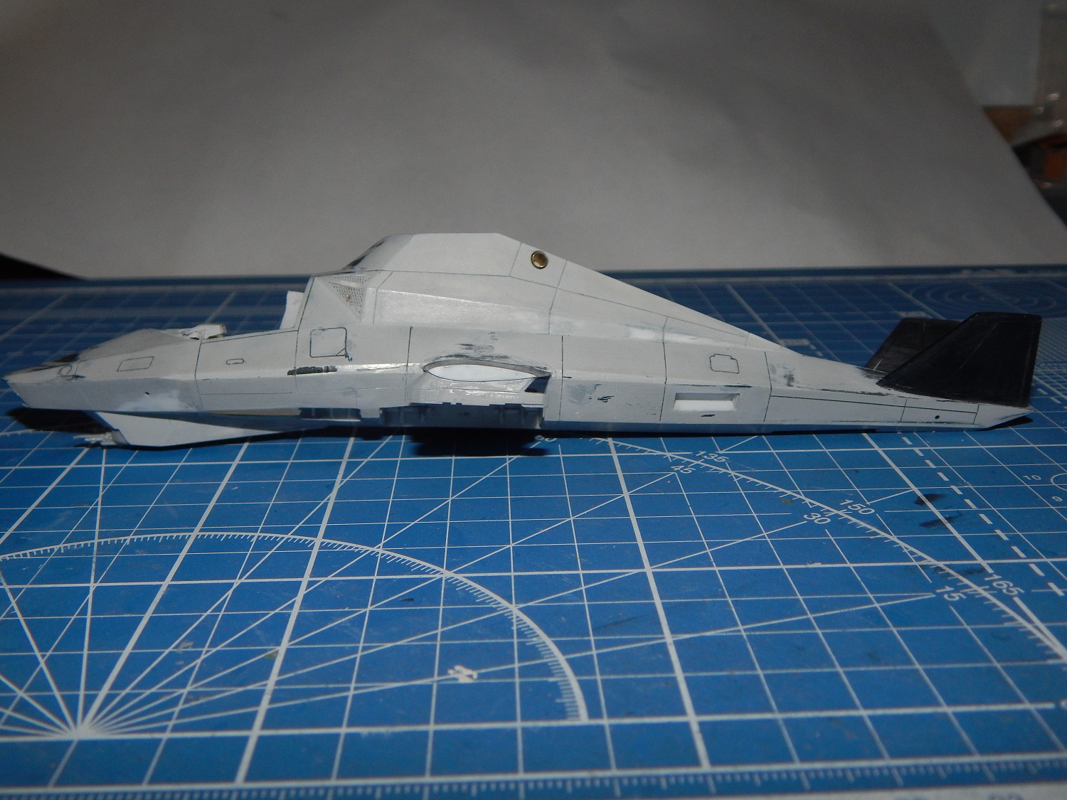 Осталось изготовить фонарь кабины и прогрунтовать фюзеляж, что бы найти недочеты, неровности, царапины, и не исправленные углы (линии).