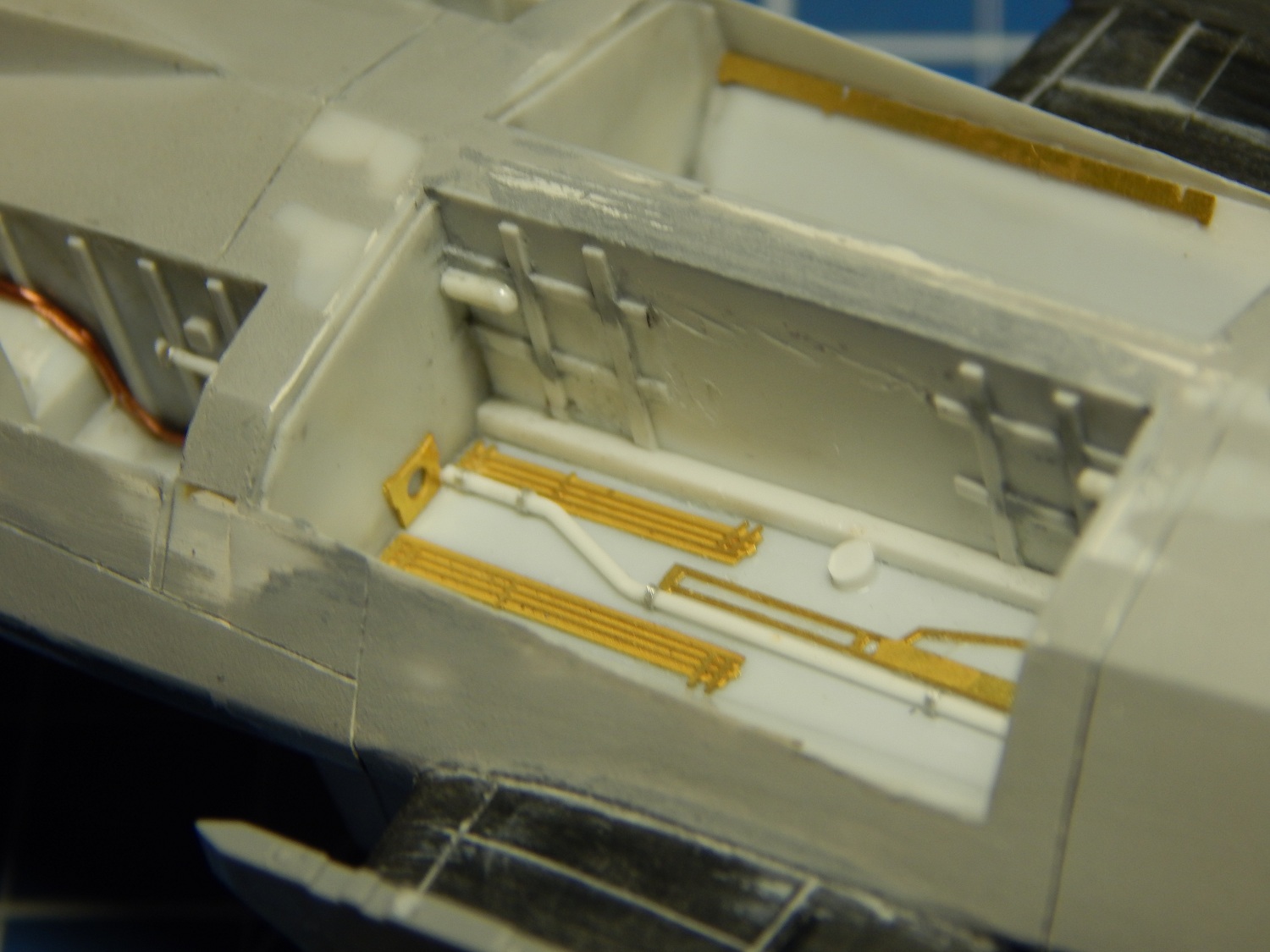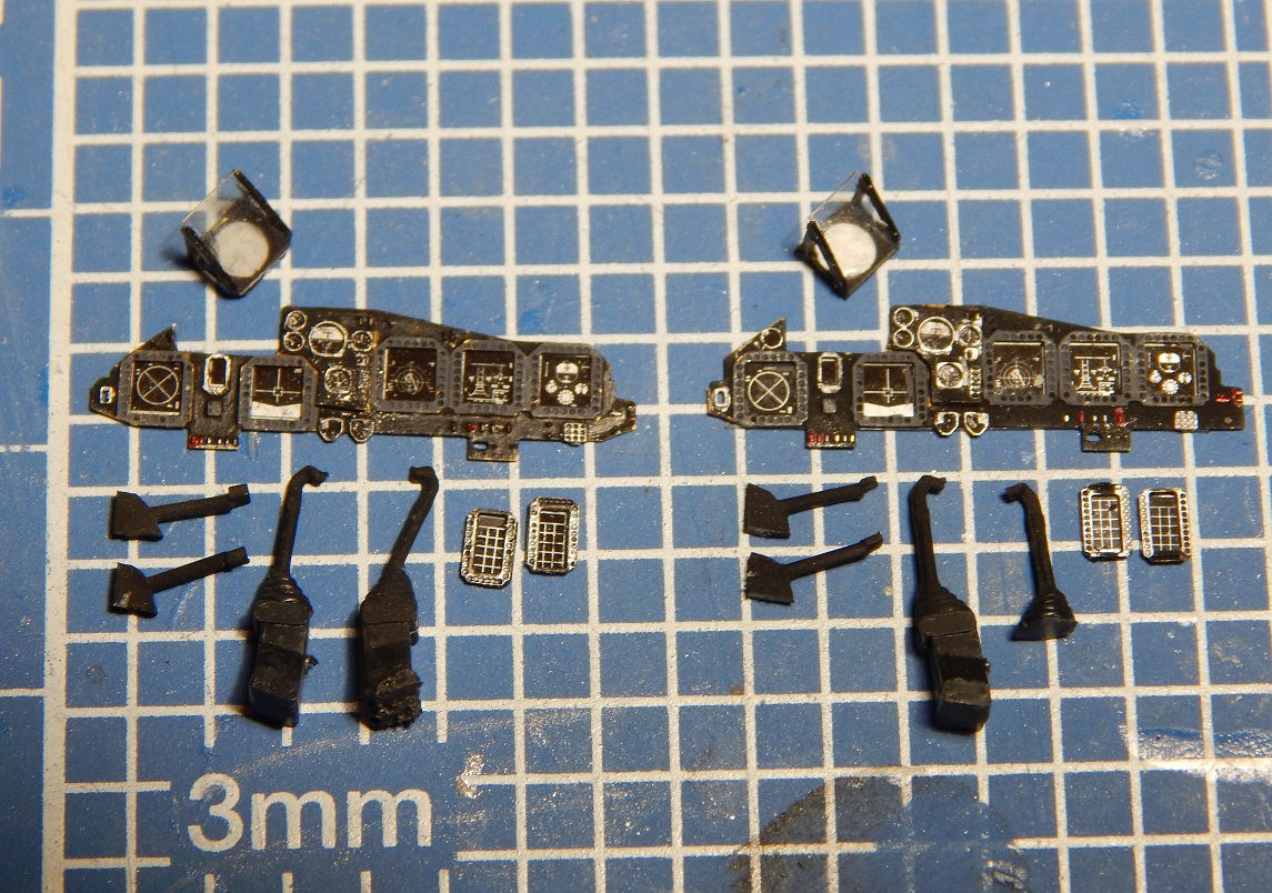 Чуть чуть переделал катапультные кресла К-37-800М с использованием чуть чуть доработанного травления. На фото 2549 привел как пример старый вариант катапультного кресла (который я изготовил) и новый с использованием травления.