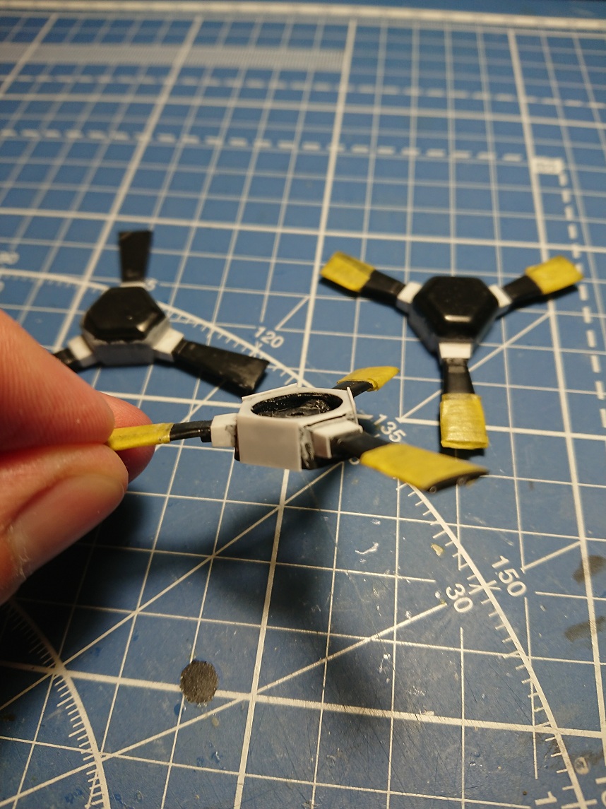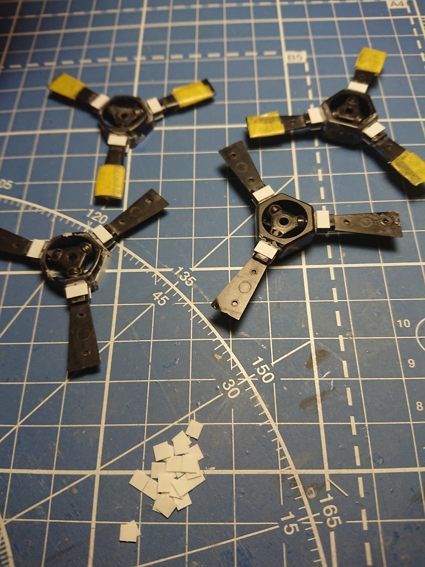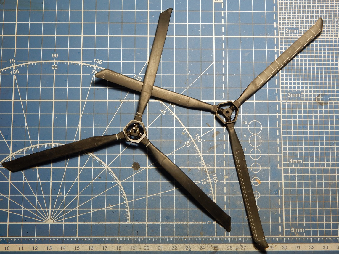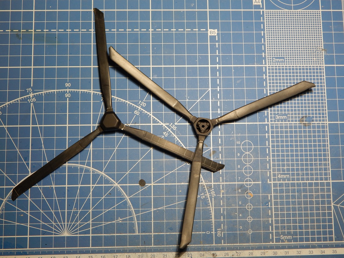 По максимуму спрямил углы втулки несущих винтов и чуть чуть доработал их. Немного уменьшил толщину самих лопастей