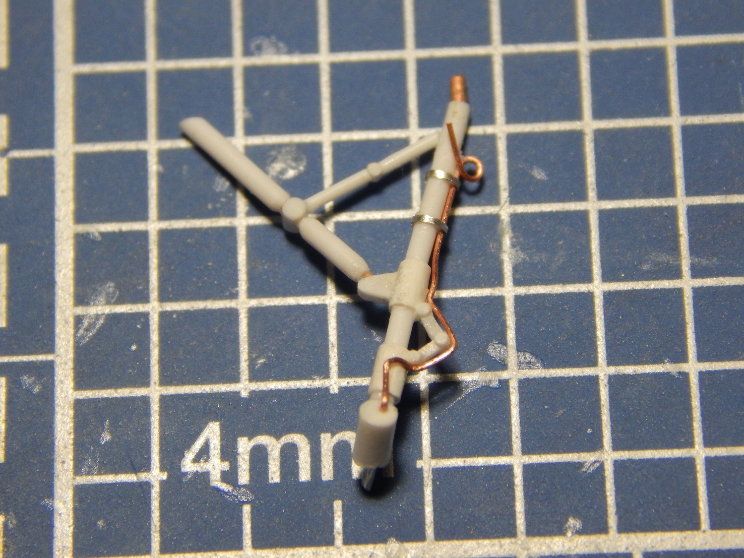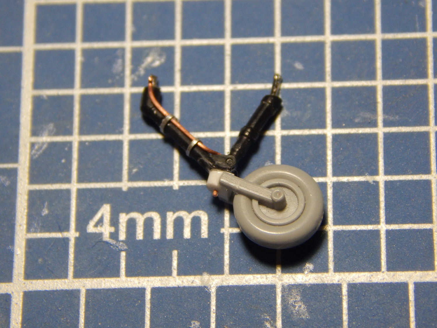 5 фото - передние стойки шасси которые идут в наборе, 6, 8, 7 фотографии - результат перепила. Заменил колеса на более похожие колеса, которые используются на вертолетах ВКС РФ, заново изготовил основную стойку, добавил механизм распора для складывающегося подкоса, добавил гидролинию, изготовил но установлю позже - цилиндр уборки - выпуска шасси.